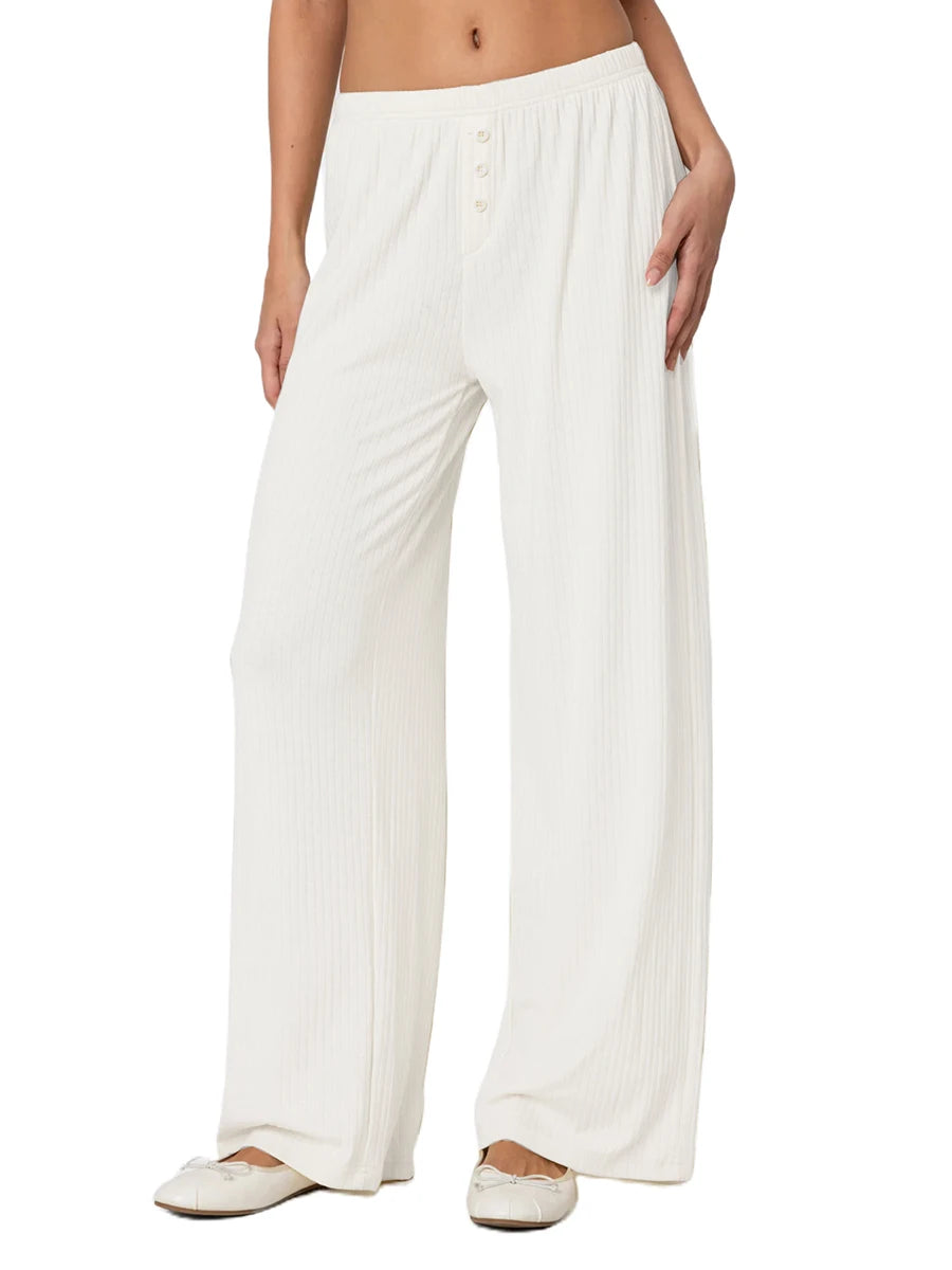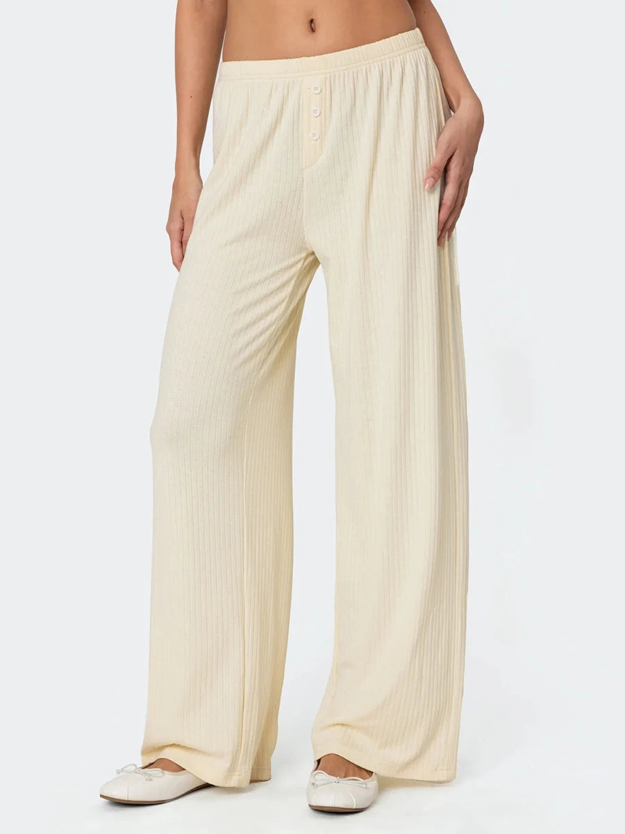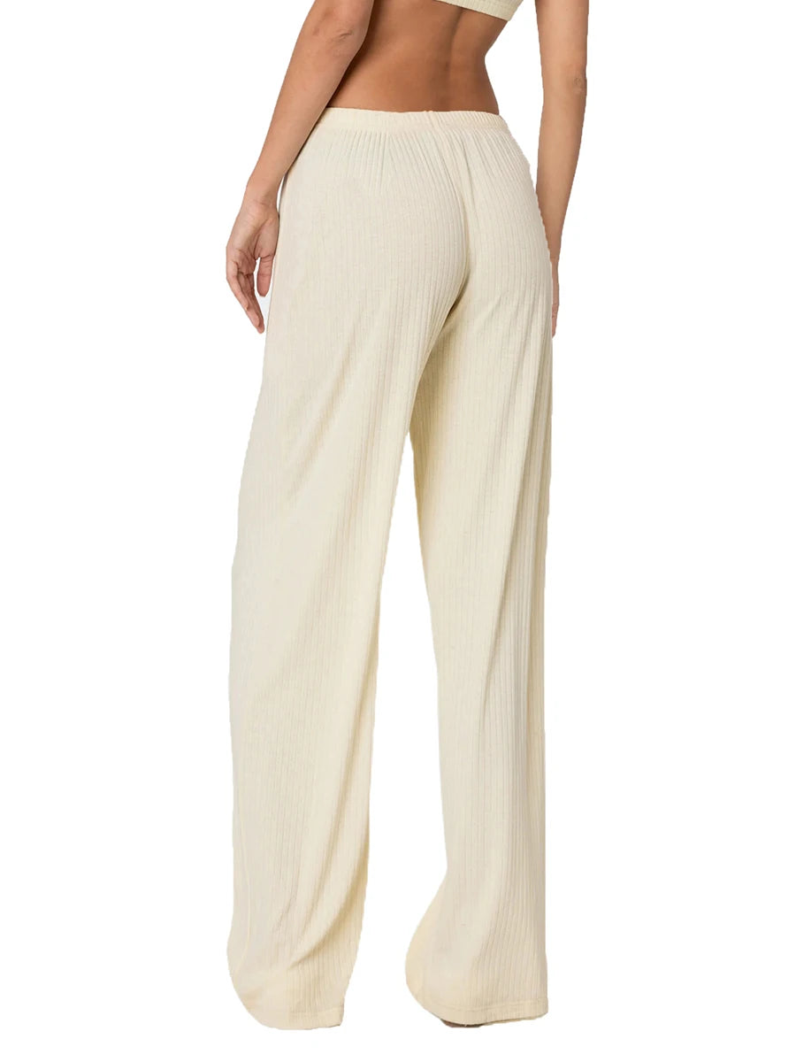 Womens Lounge Pants Loose Solid Color Elastic Waist Long Trousers Casual Streetwear