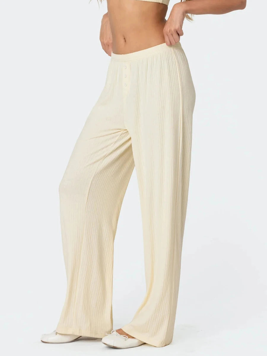 These full-length wide-leg pants are designed for comfort and style. Featuring an elastic waist, they provide an easy, adjustable fit. Crafted from polyester waffle fabric, the pants are lightweight and breathable, making them perfect for all-day wear. The loose fit ensures comfort, while the straight pant style creates a flattering silhouette. With a solid pattern and mid waist, they can be paired with a variety of tops for both casual and slightly more polished looks. These versatile pants are ideal for casual outings or lounging in style.