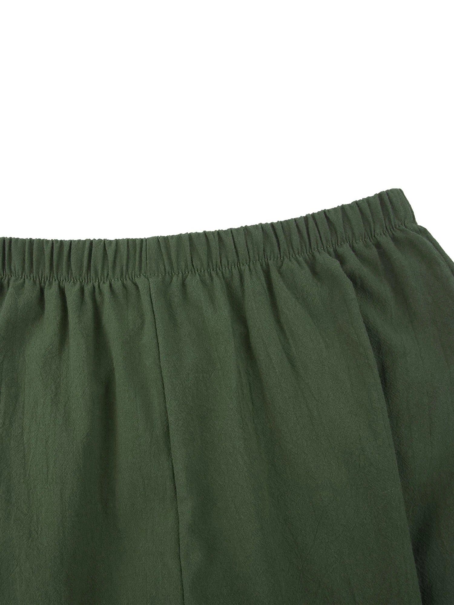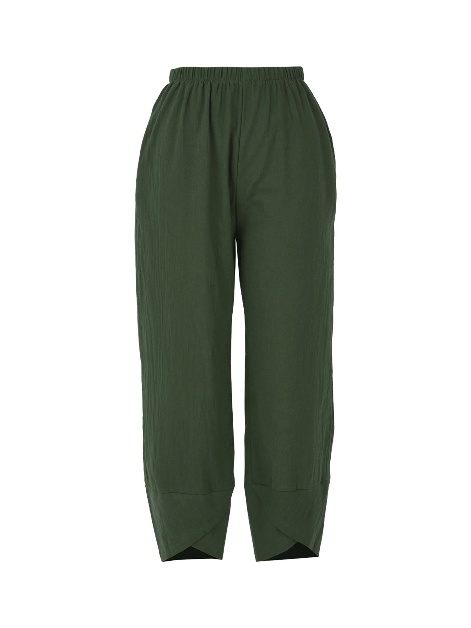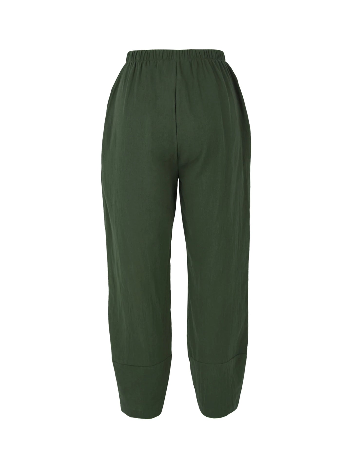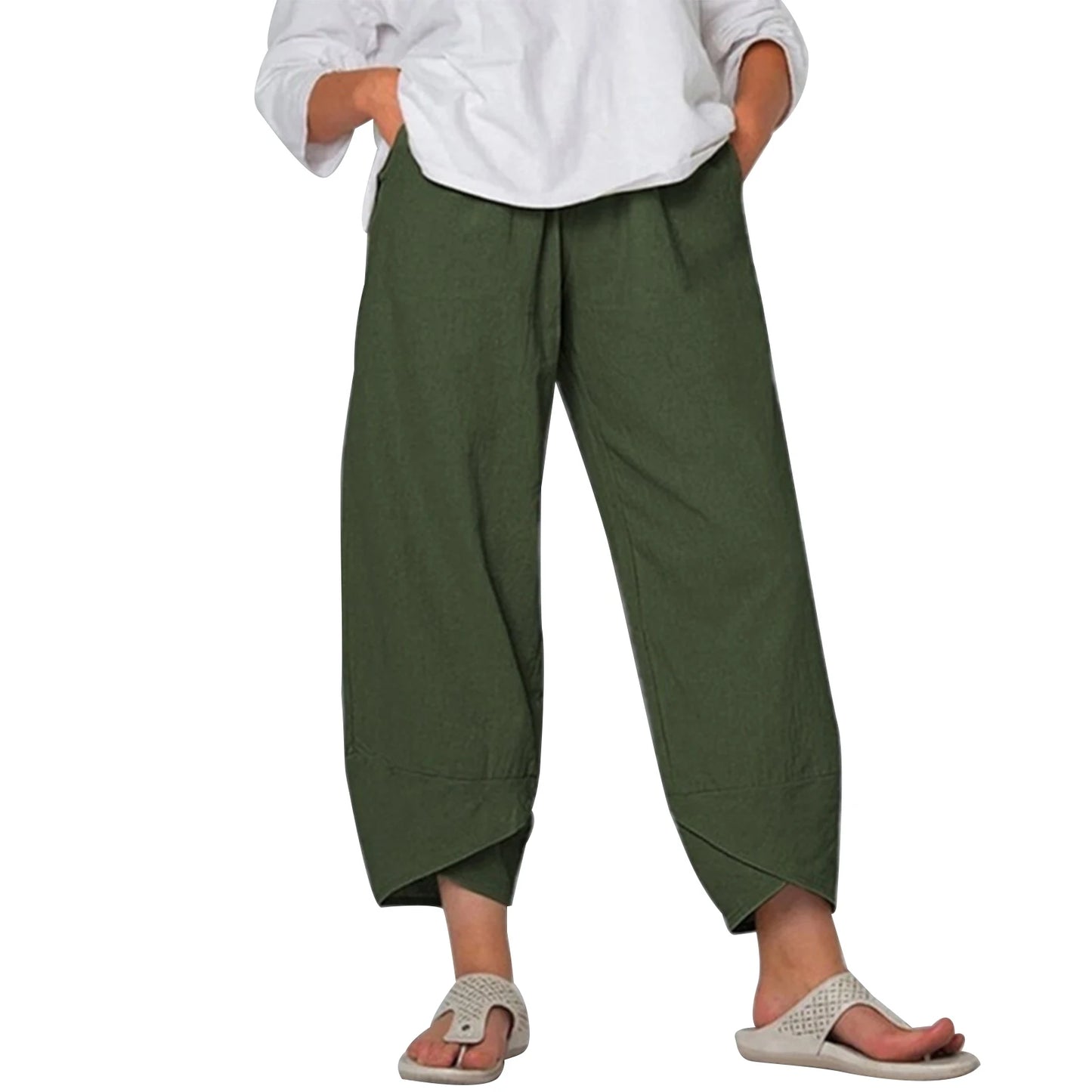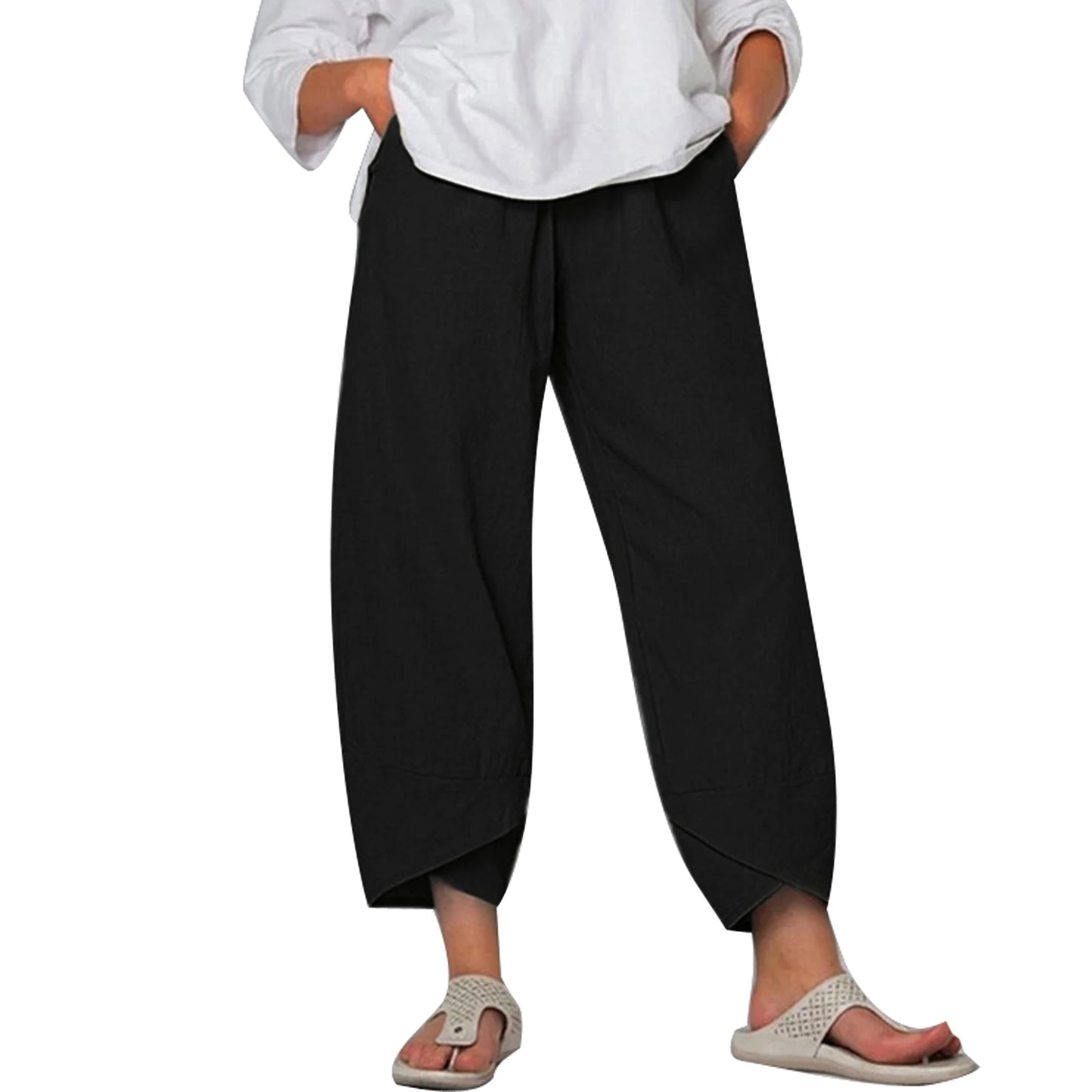 Women Summer Ninth Pants, Solid Color Middle Waist Loose Casual Trousers with Pockets for Girls