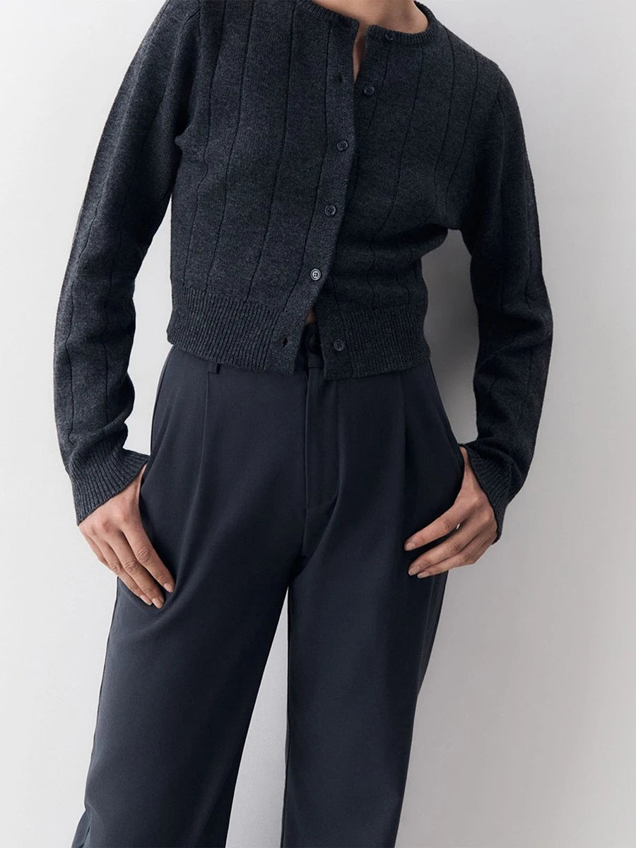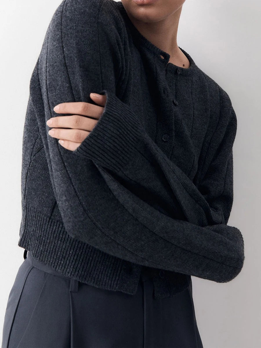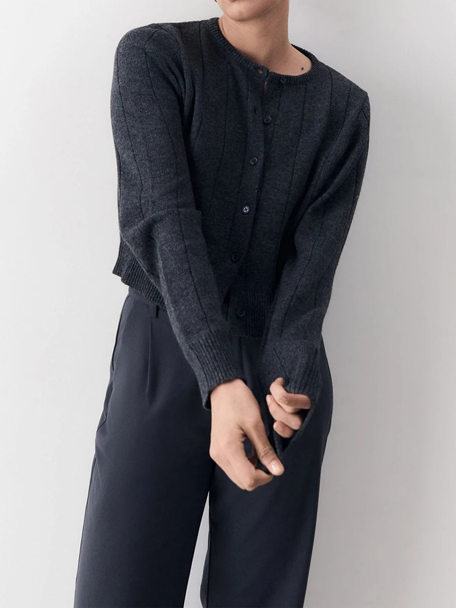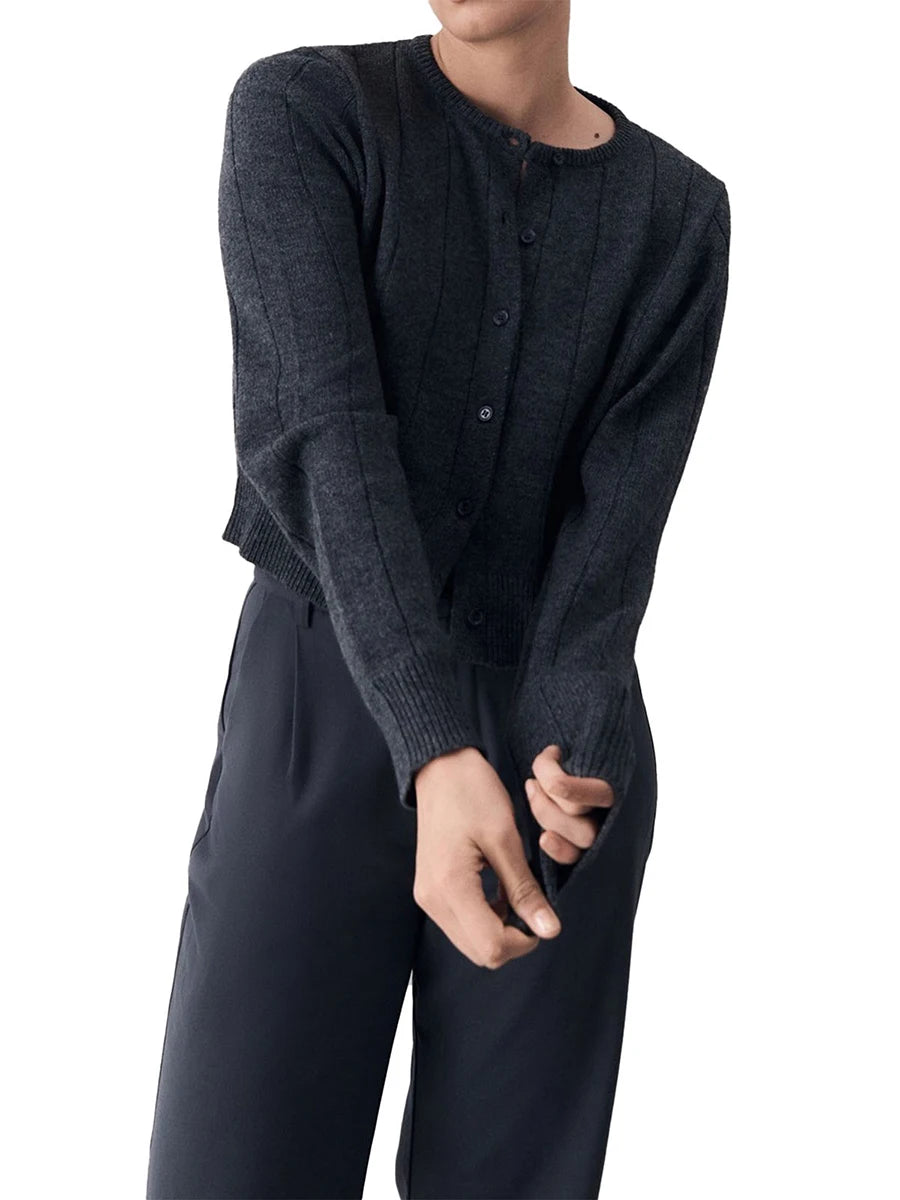 Women's Knit Cardigan Solid Color Ribbed Long Sleeve Button Closure Sweaters