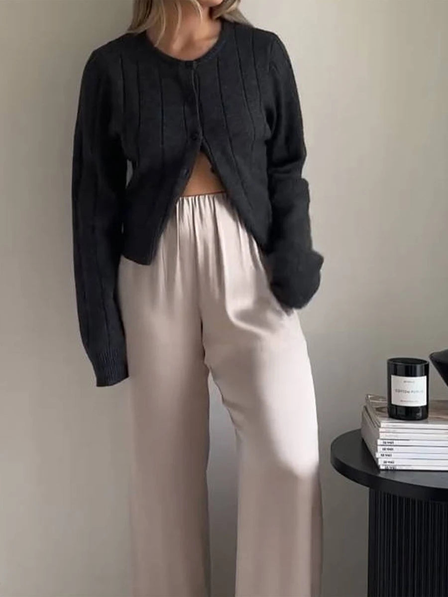 Stay warm and stylish with this Women’s Solid Knit O-Neck Single-Breasted Sweater Jacket, designed for year-round comfort. Made from polyester, this standard thickness sweater jacket offers the perfect balance of warmth and breathability, making it ideal for all-season wear. Pair this sweater jacket with your favorite jeans, skirts, or dresses for a chic, casual look. Whether you're heading to work, going out for a casual outing, or lounging at home, this versatile piece will keep you stylish and comfortable all year long!