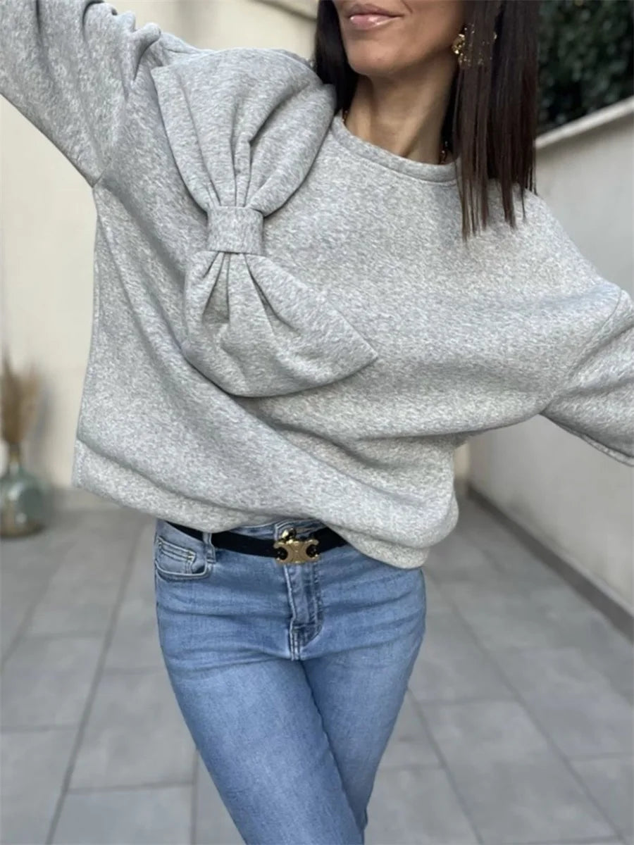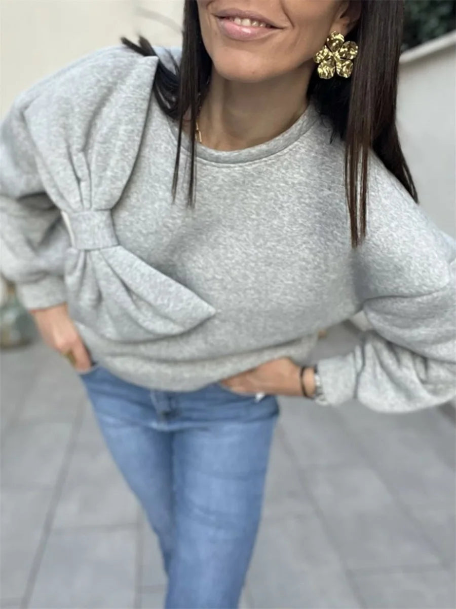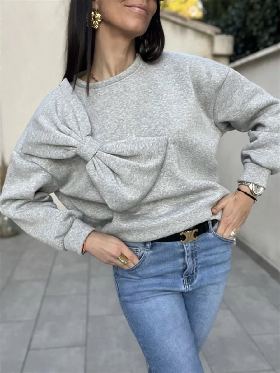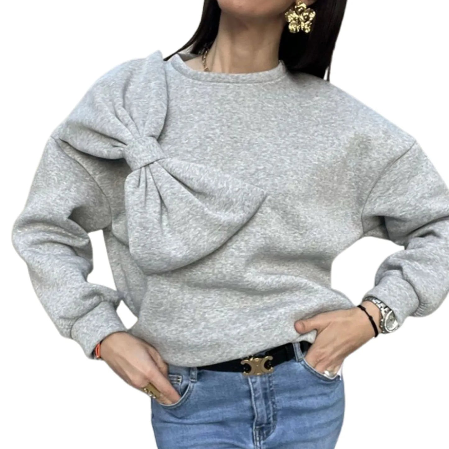 Women's Fall Loose Pullover Cute 3D Bowknot Solid Color Long Sleeve Crew Neck Sweatshirt