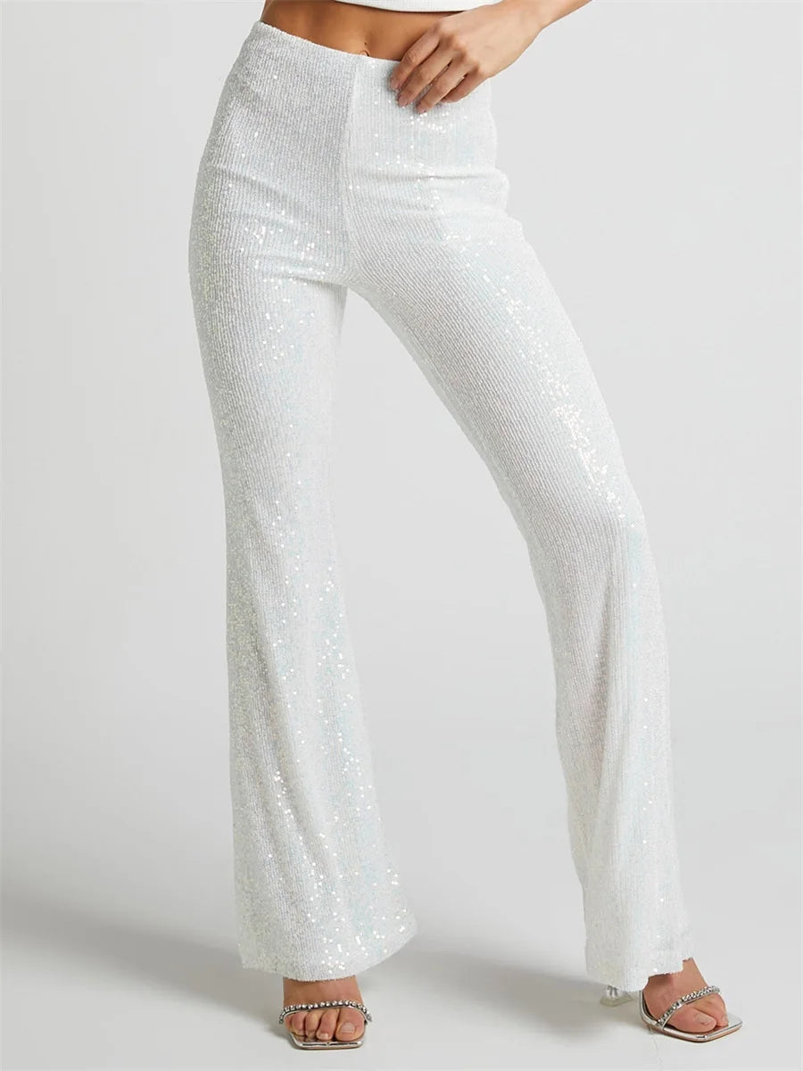 Women Flare Pants, High Waist Sequined Fit Long Trousers Streetwear for Club Party