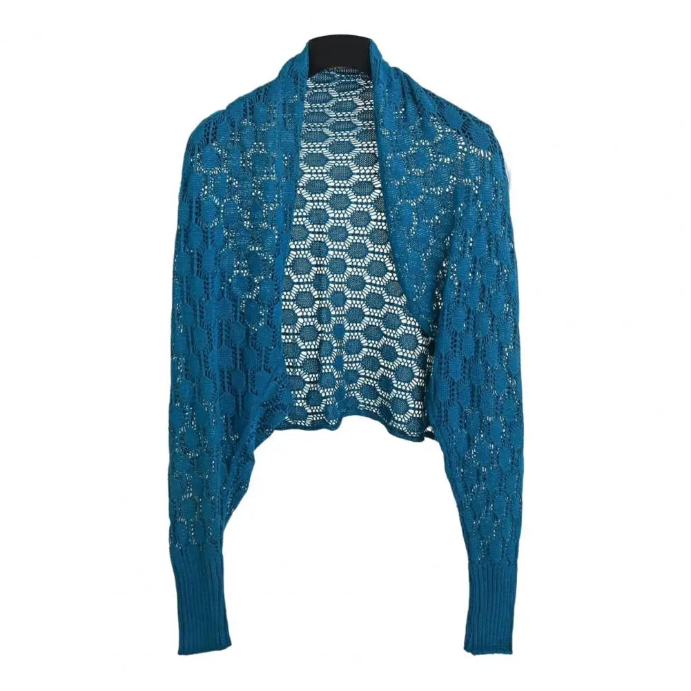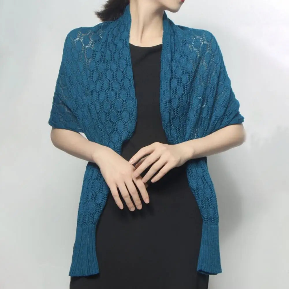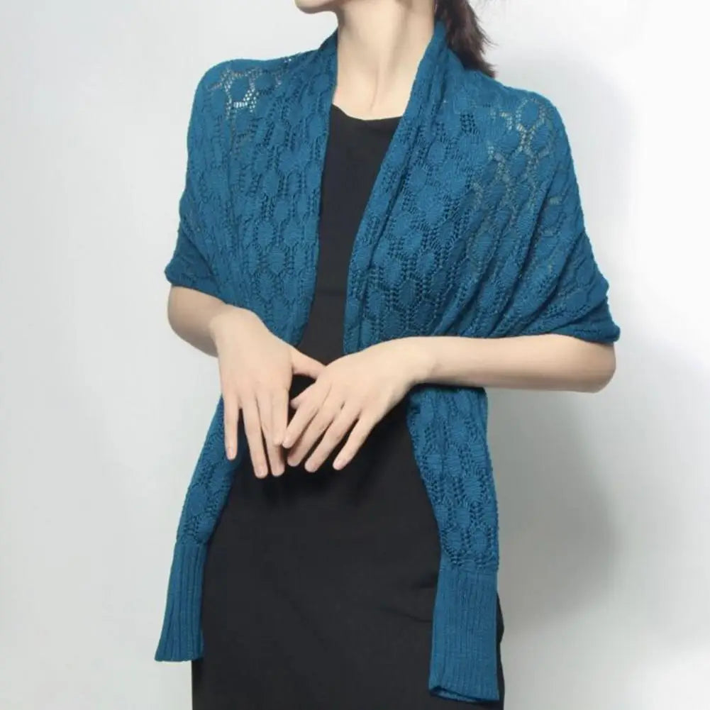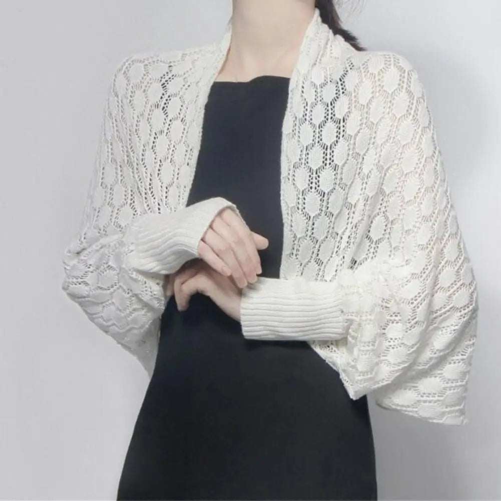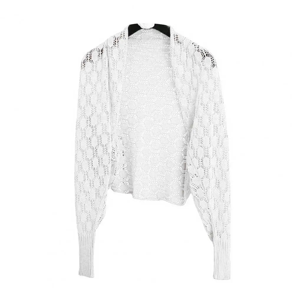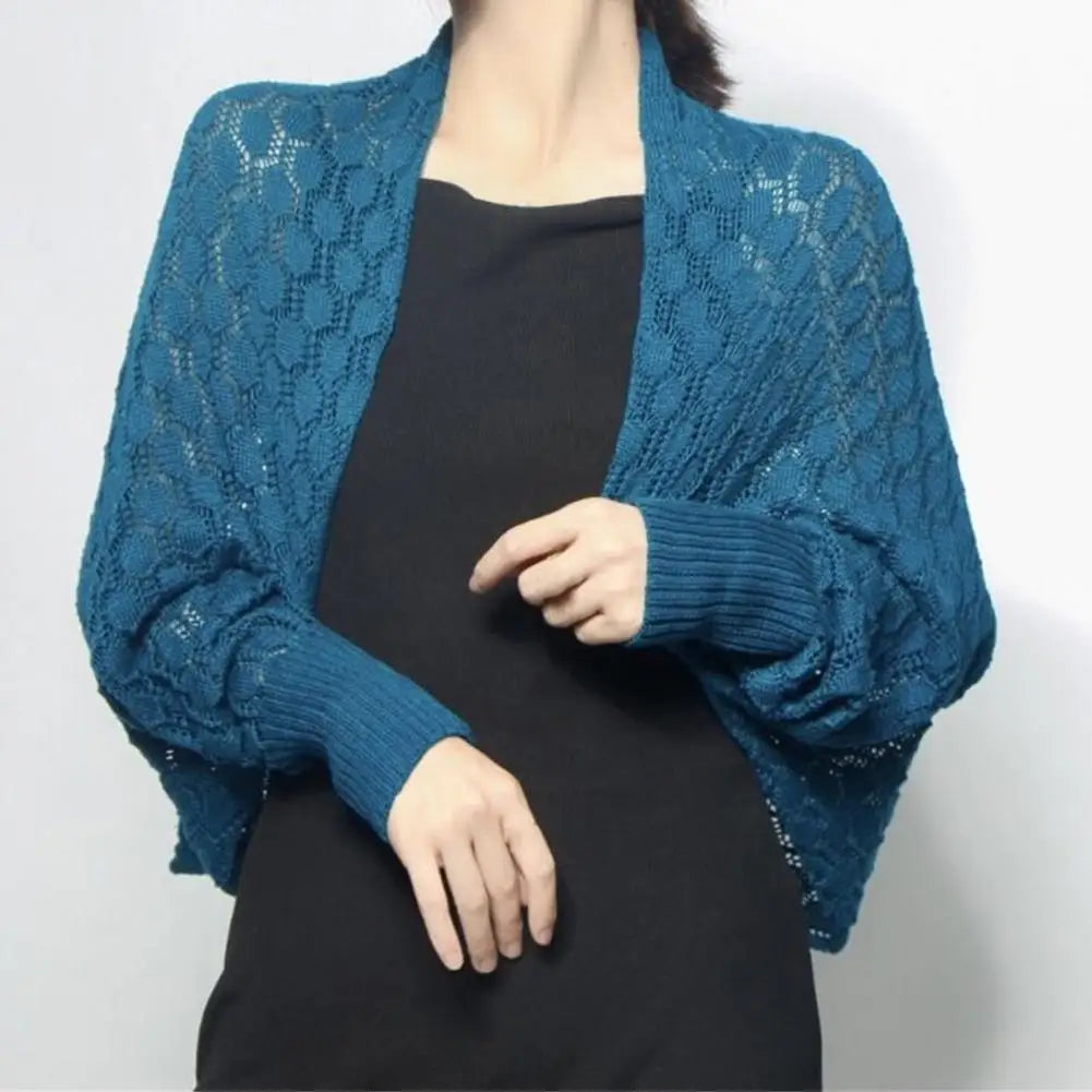 Women Shawl Long Sleeve Soft Fabric Cardigan Open Stitch Solid Color See-through Hollow Out