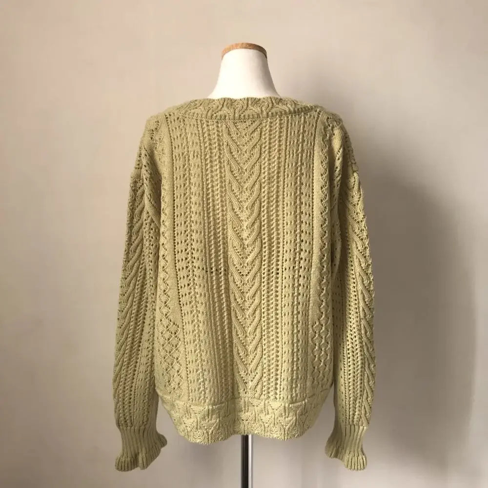 Women Spring Summer Sweater and Cardigans Low V-Neck Knit Tops Long Sleeve Hollow Out Sexy Cardigan Loose