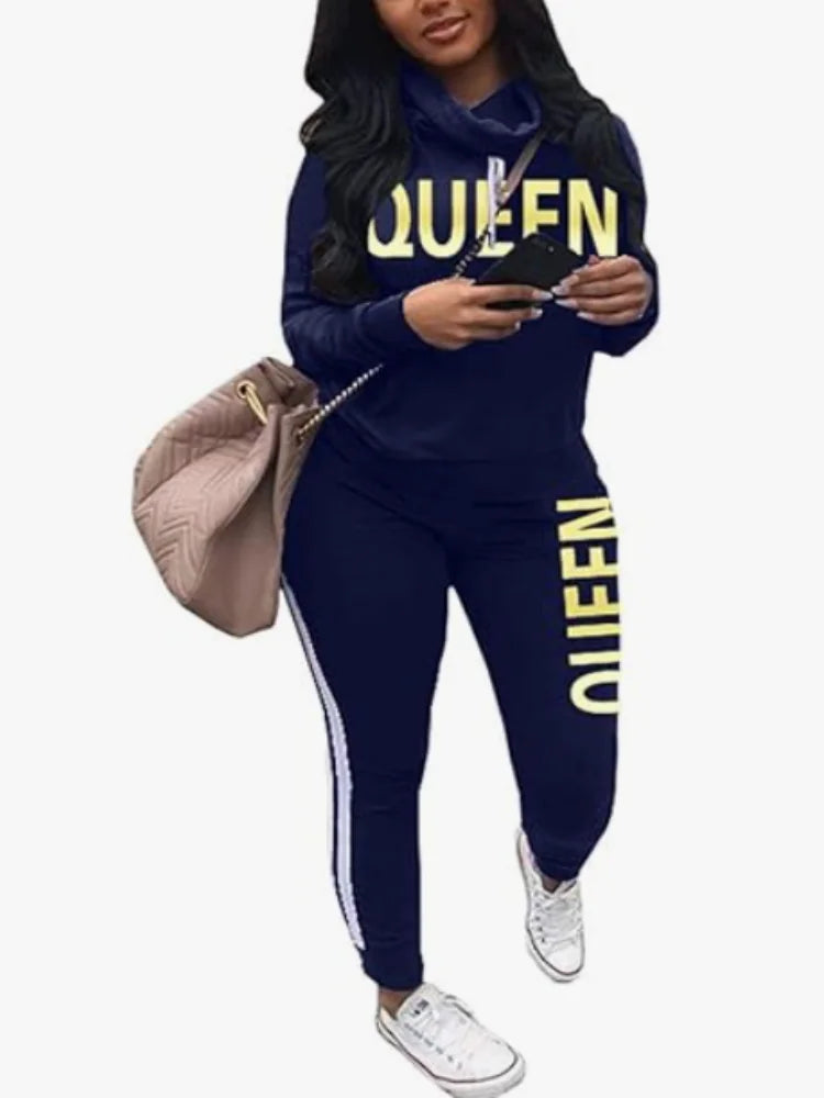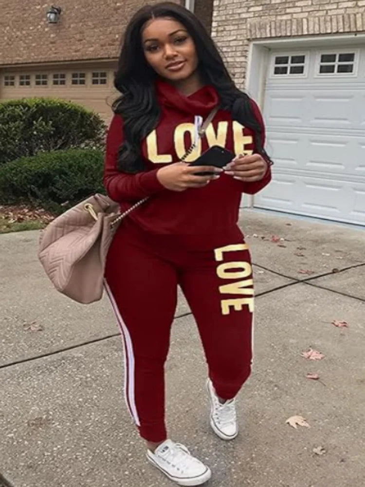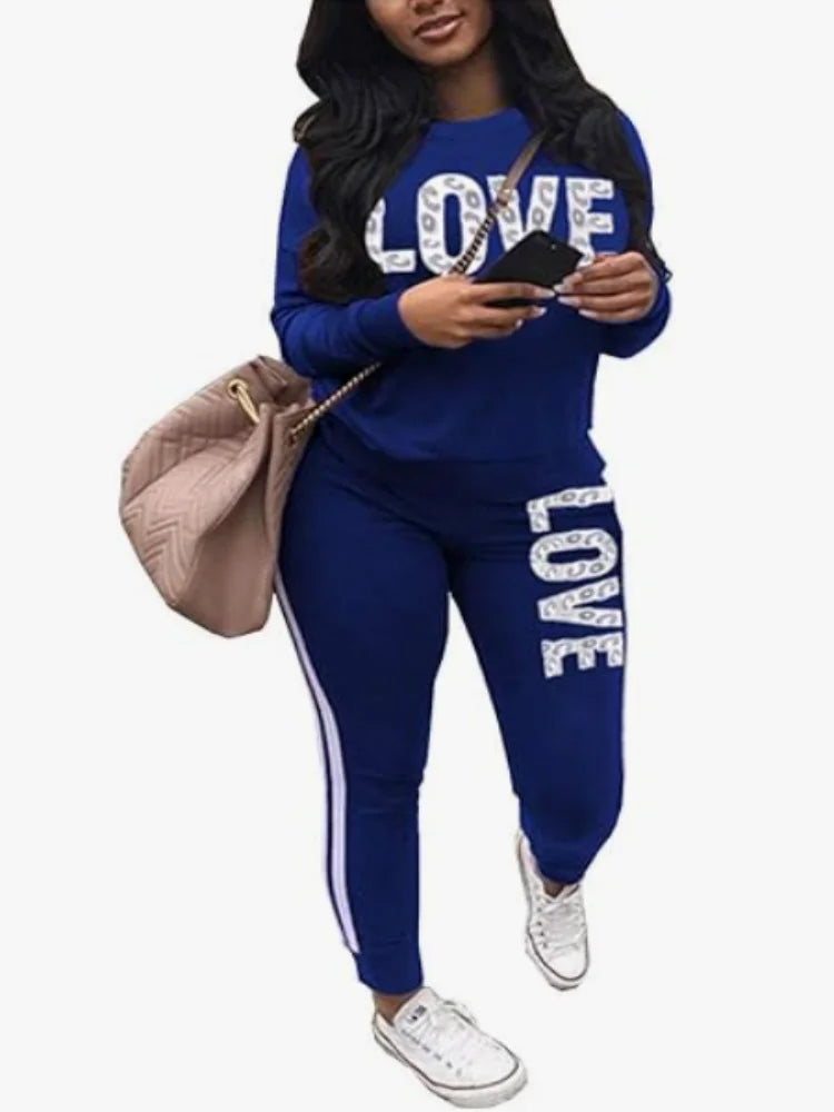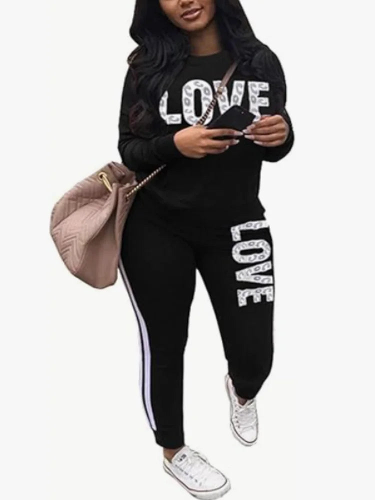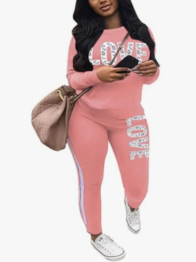 This casual two-piece set blends style and comfort with a knit pullover top and ankle-length drawstring pants. Designed with slight stretch for ease of movement, the set is crafted from a laminated fabric blend of polyester and spandex, ensuring a soft yet durable feel. The O-neck pullover features letter print decoration, while the regular-fit pants sit at a mid waist, offering a relaxed yet flattering silhouette. Perfect for lounging, errands, or casual outings, this effortlessly stylish set is a wardrobe essential.