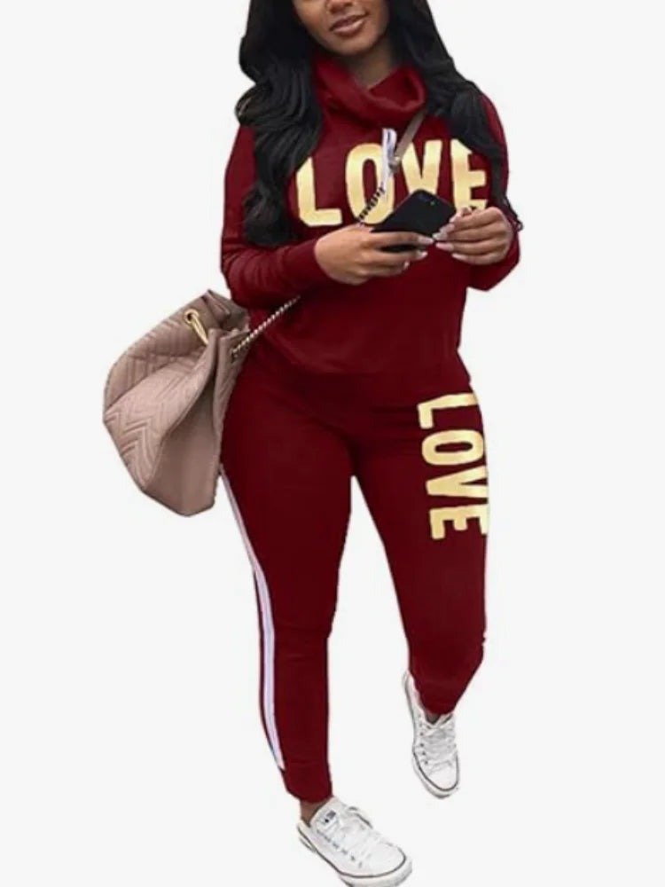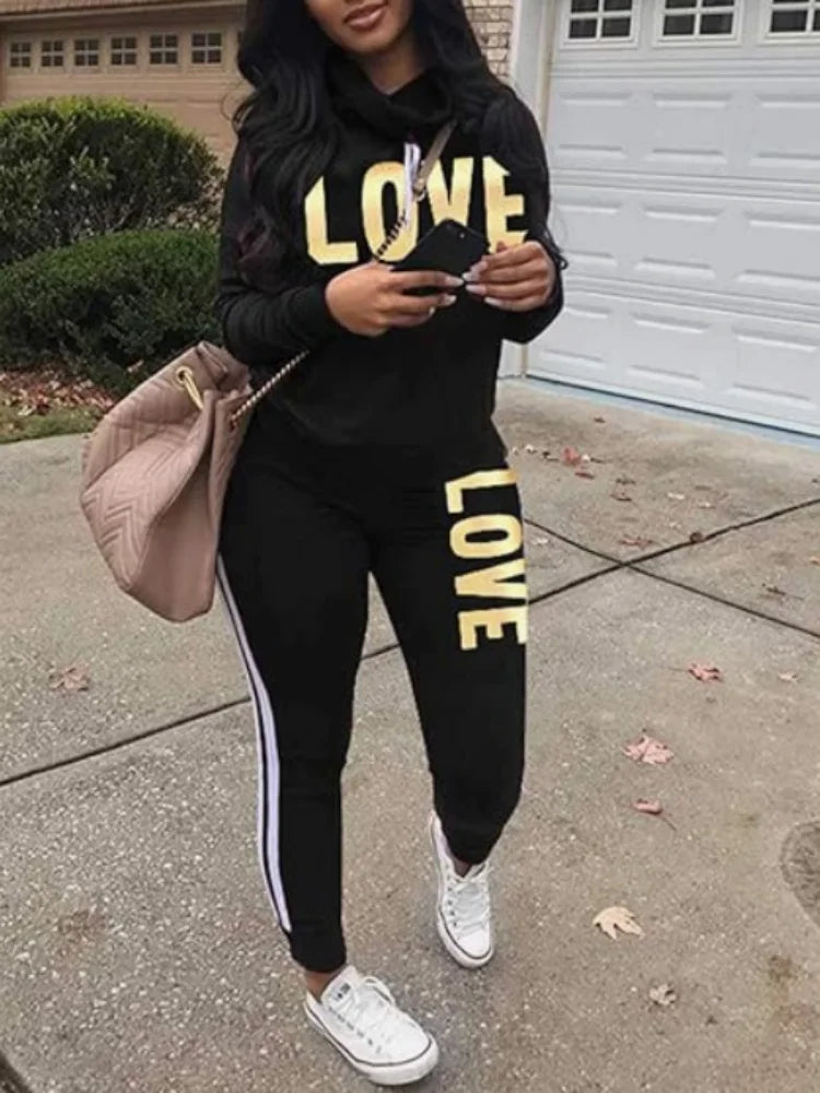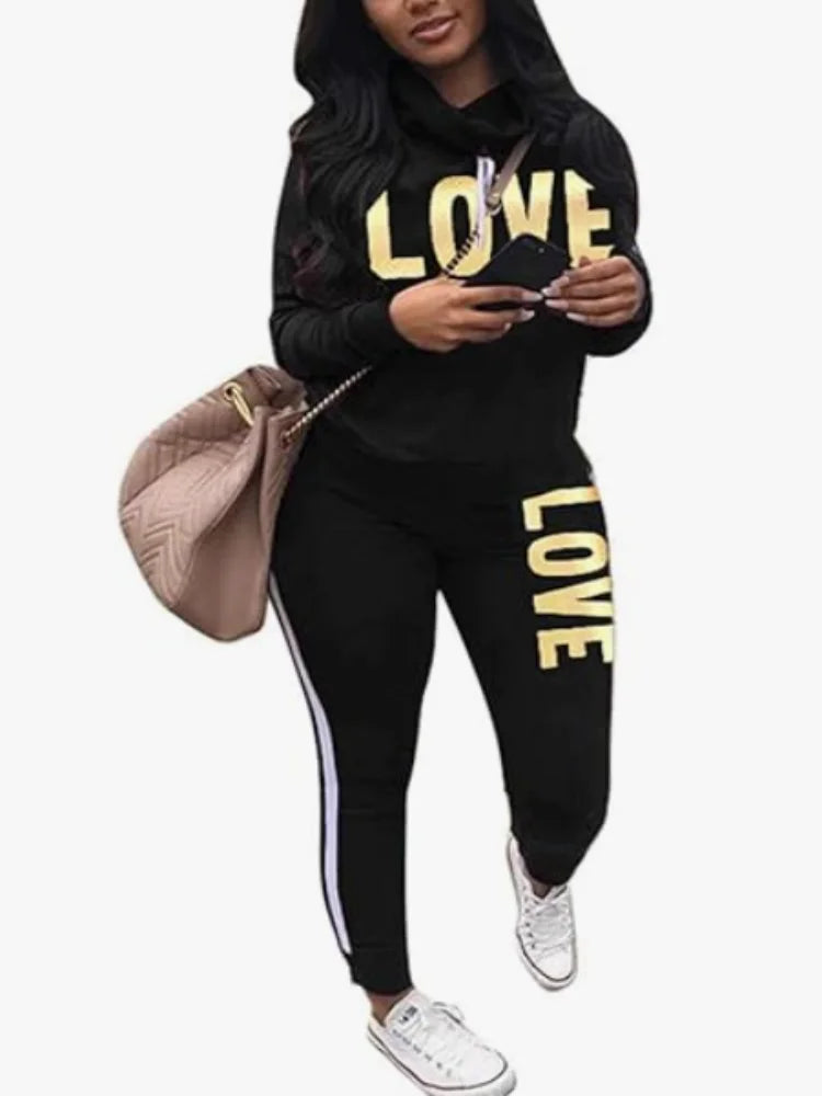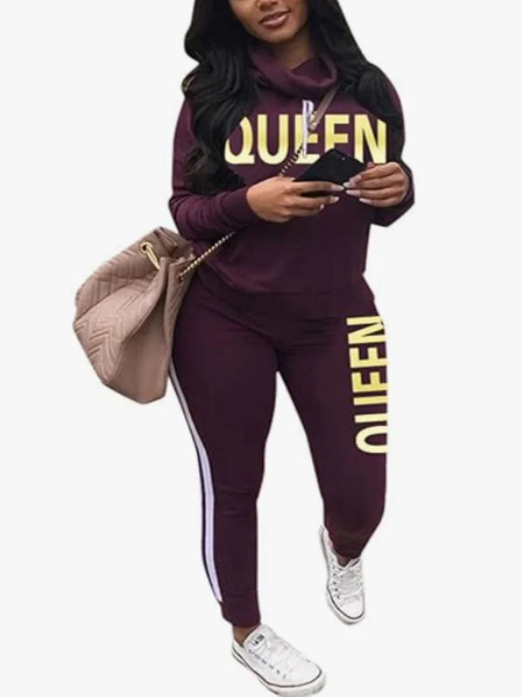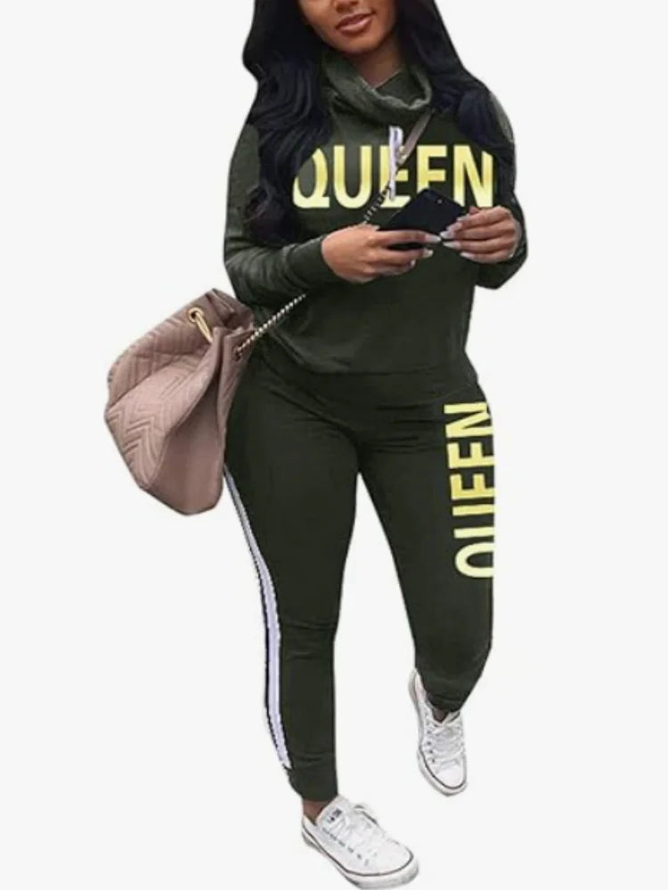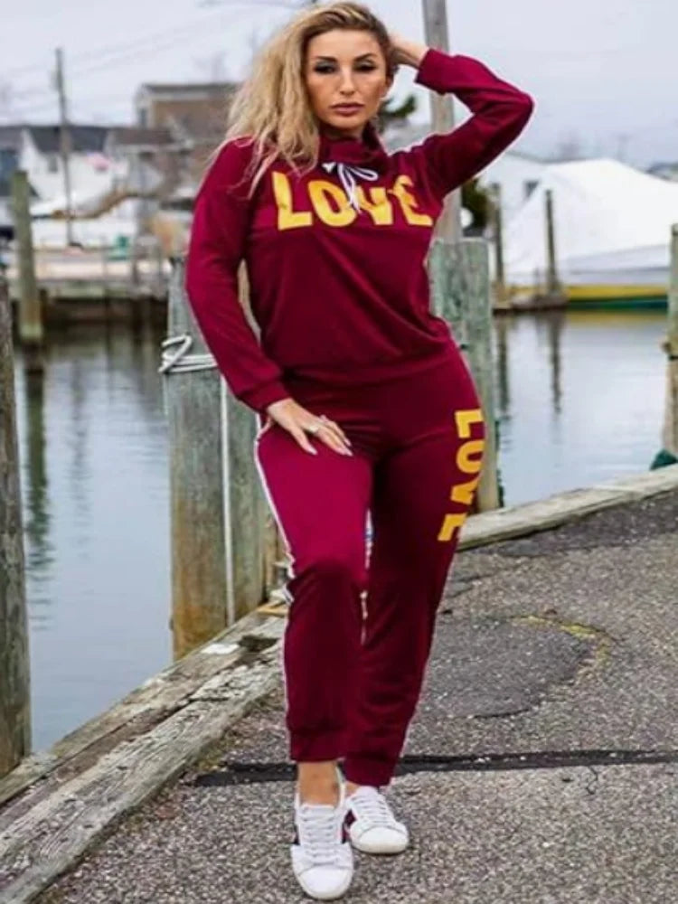 This casual two-piece set blends style and comfort with a knit pullover top and ankle-length drawstring pants. Designed with slight stretch for ease of movement, the set is crafted from a laminated fabric blend of polyester and spandex, ensuring a soft yet durable feel. The O-neck pullover features letter print decoration, while the regular-fit pants sit at a mid waist, offering a relaxed yet flattering silhouette. Perfect for lounging, errands, or casual outings, this effortlessly stylish set is a wardrobe essential.