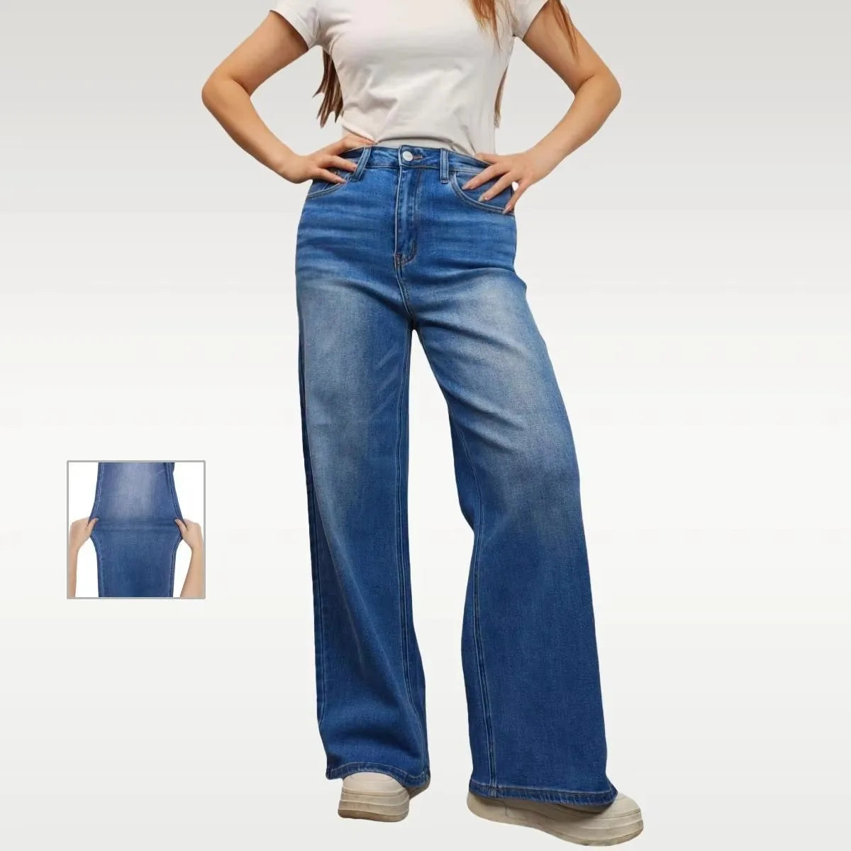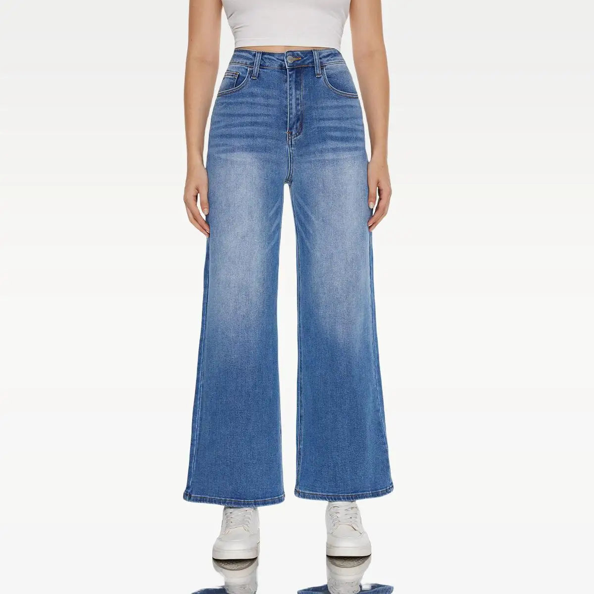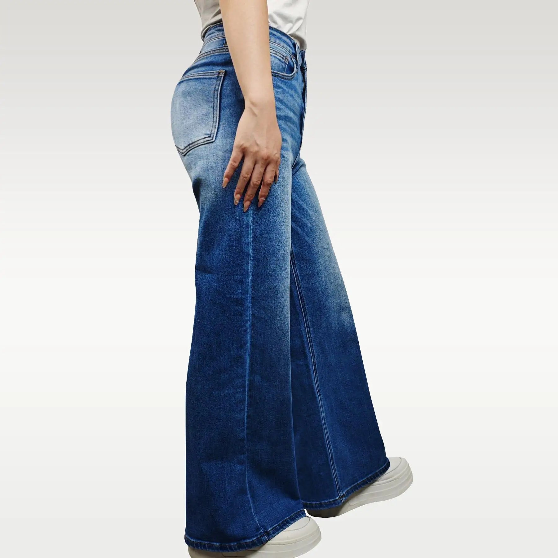 Women Wide Leg High-waisted Stretchy Jeans Baggy Pants Medium Blue Streetwear