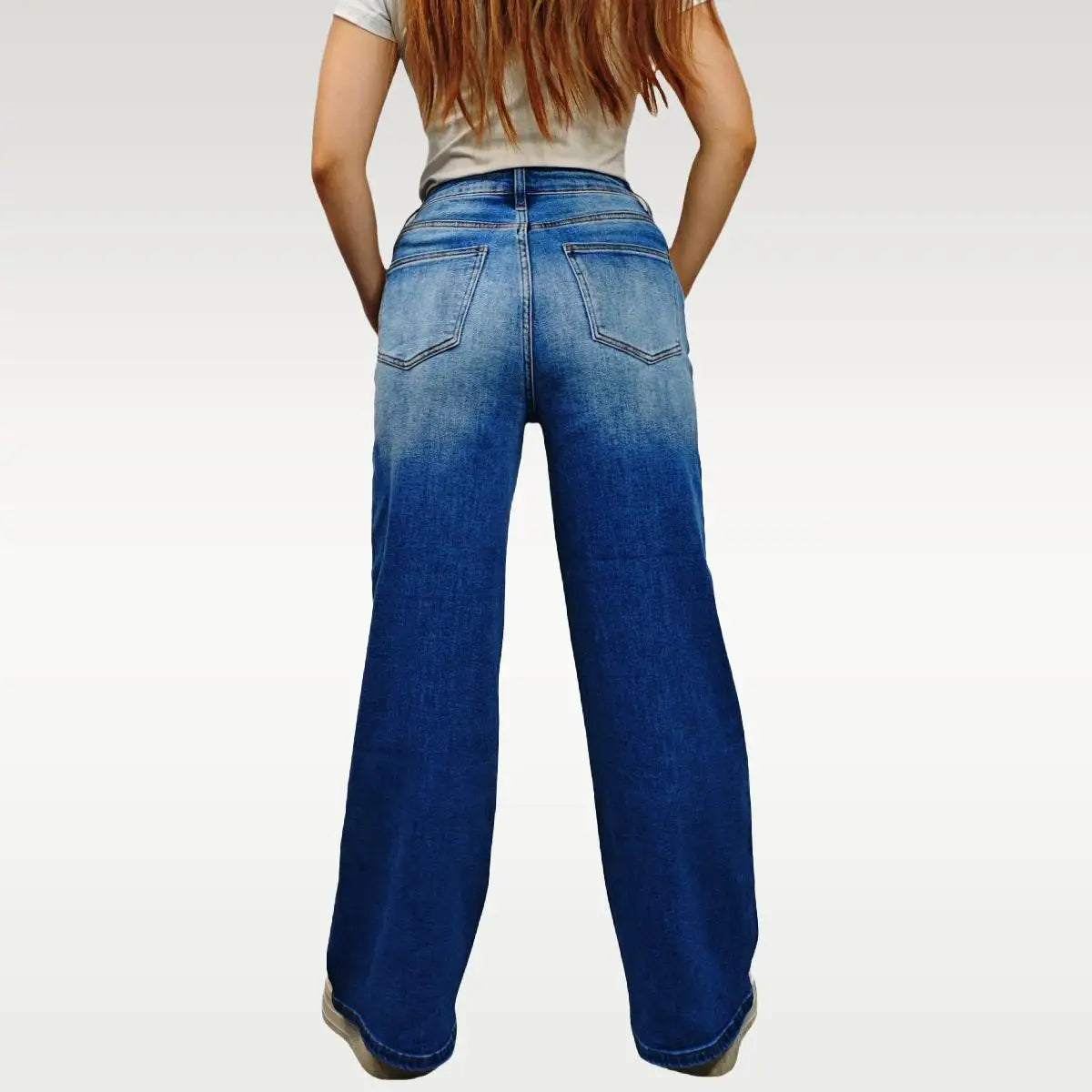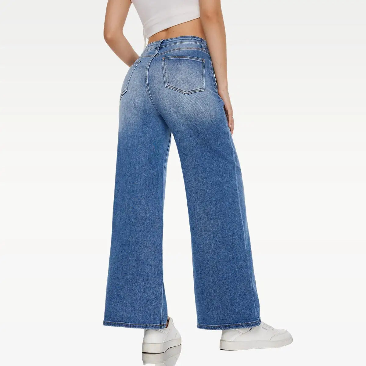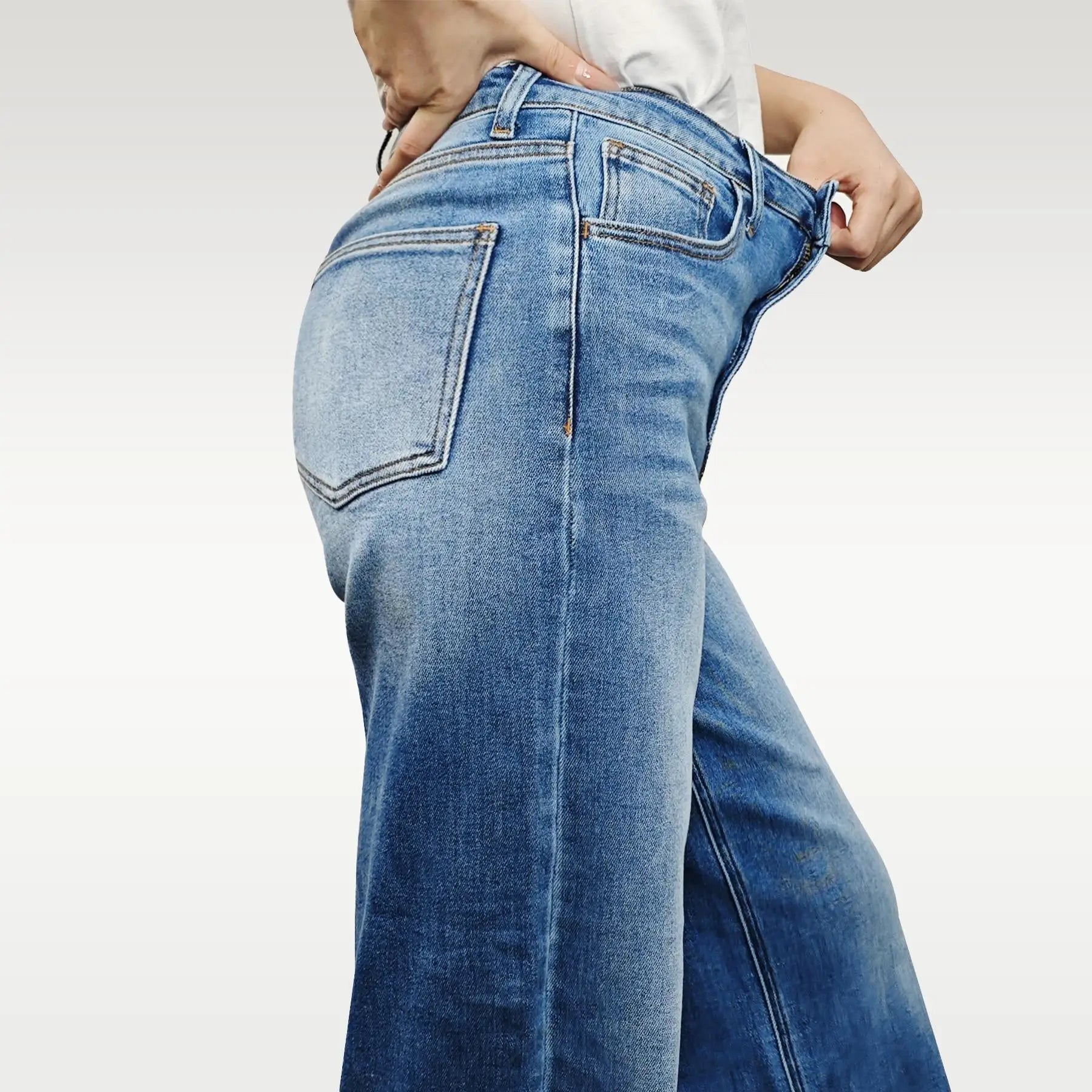 Women Wide Leg High-waisted Stretchy Jeans Baggy Pants Medium Blue Streetwear