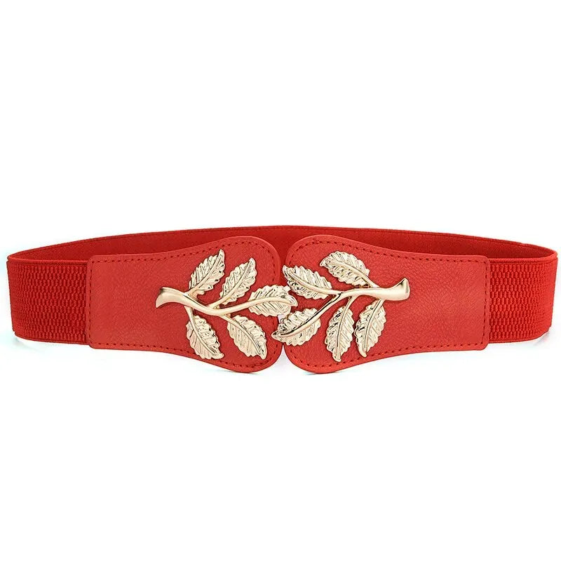 Women's Belt Fashion Waist Cover Golden Leaf Elastic Waist Closure With Double Hook Buckle Wide Belts Paired With Skirt