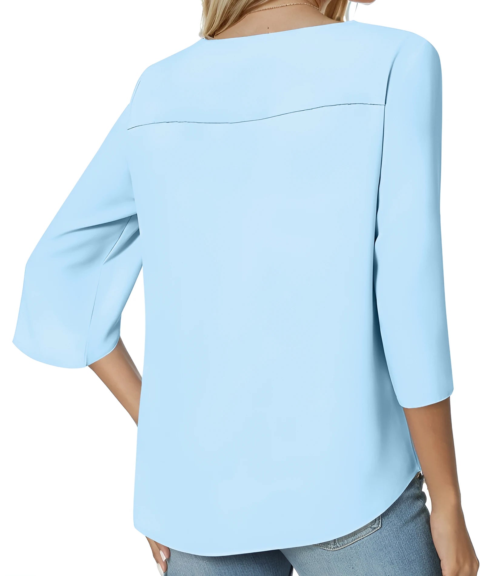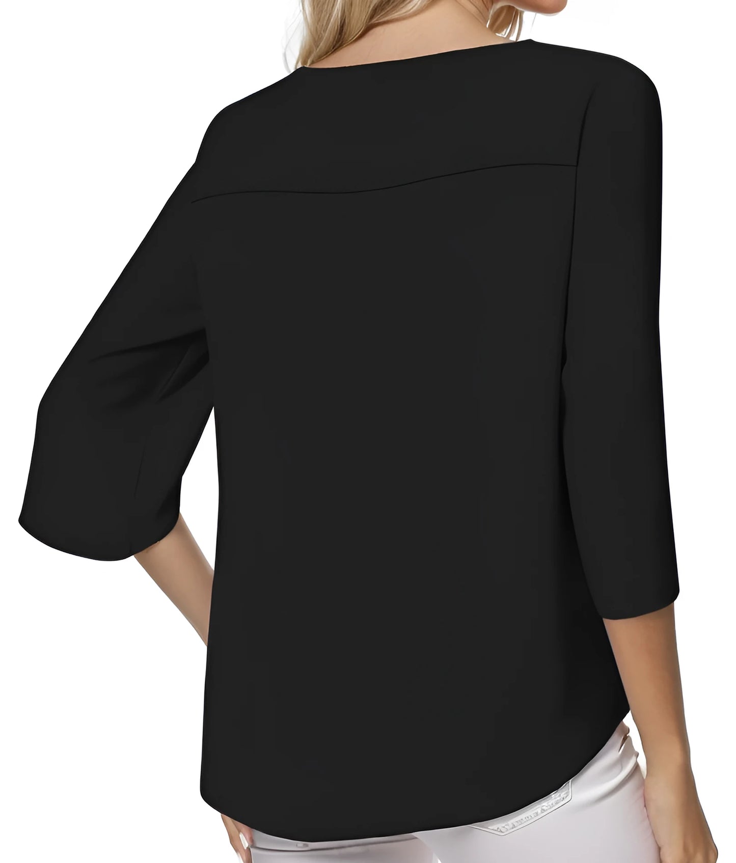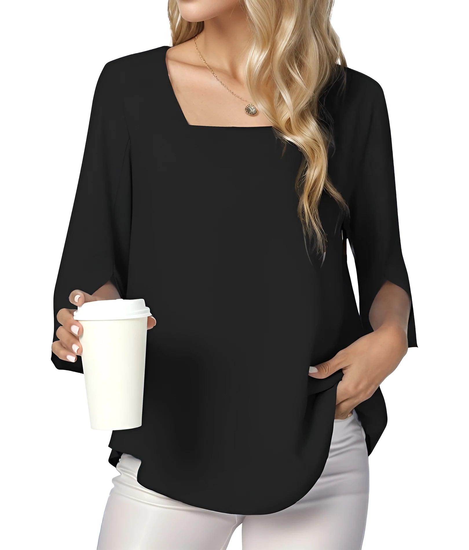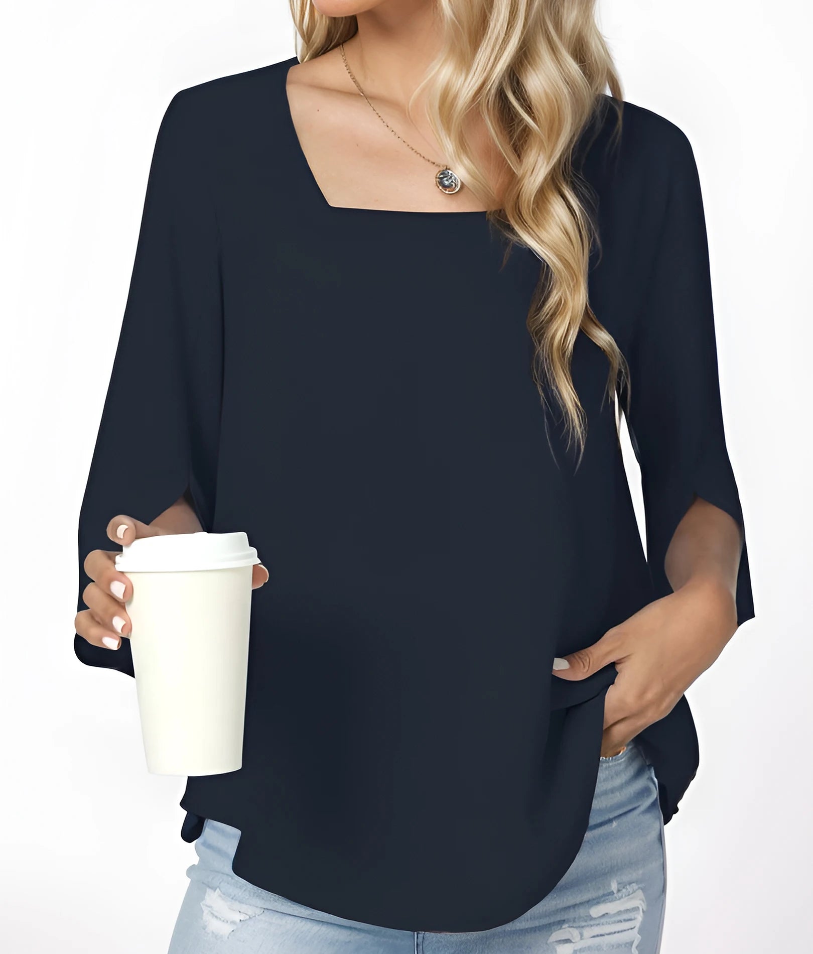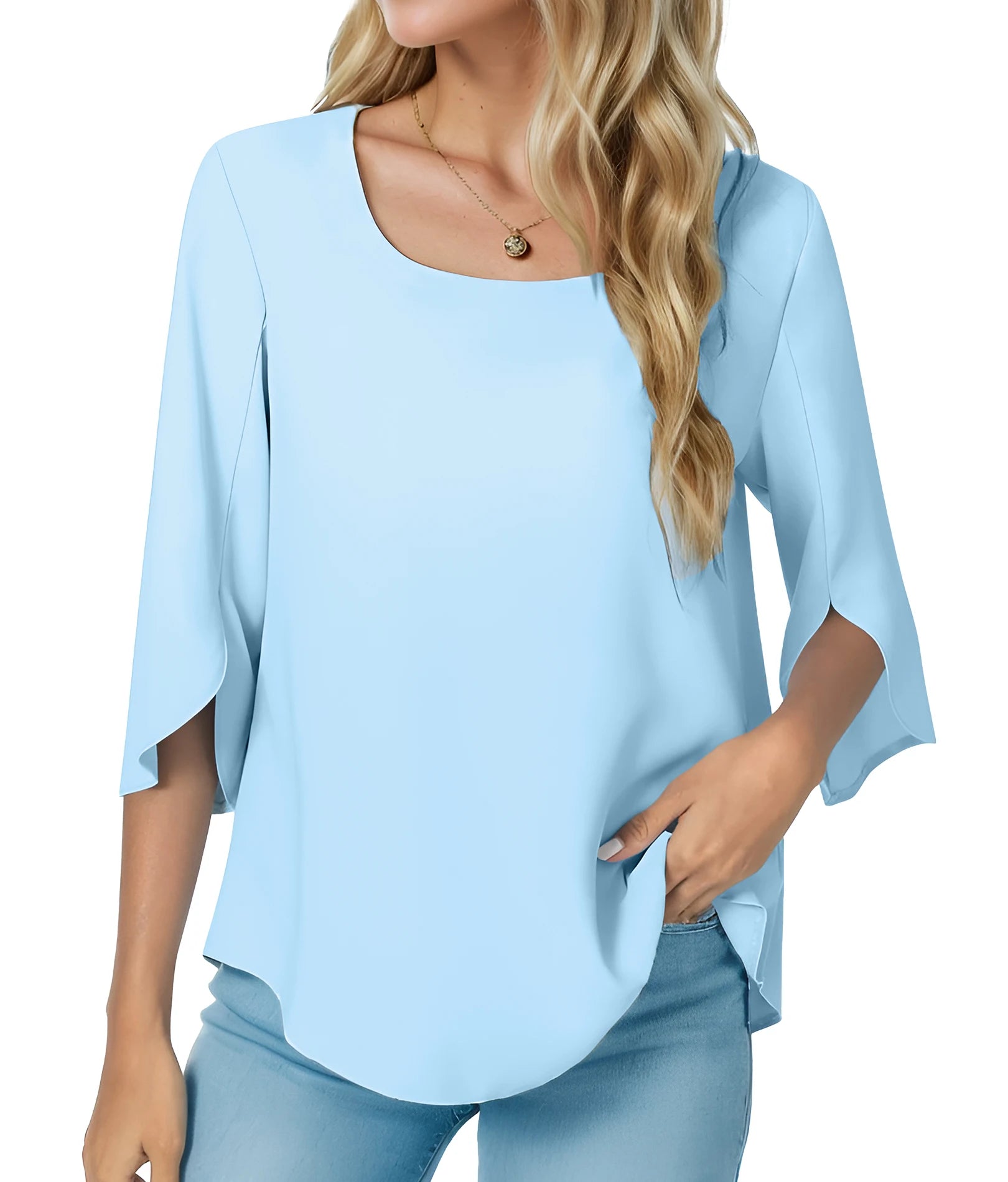 Womens Casual Square Neck Loose Top 3/4 Sleeve Chiffon Blouse