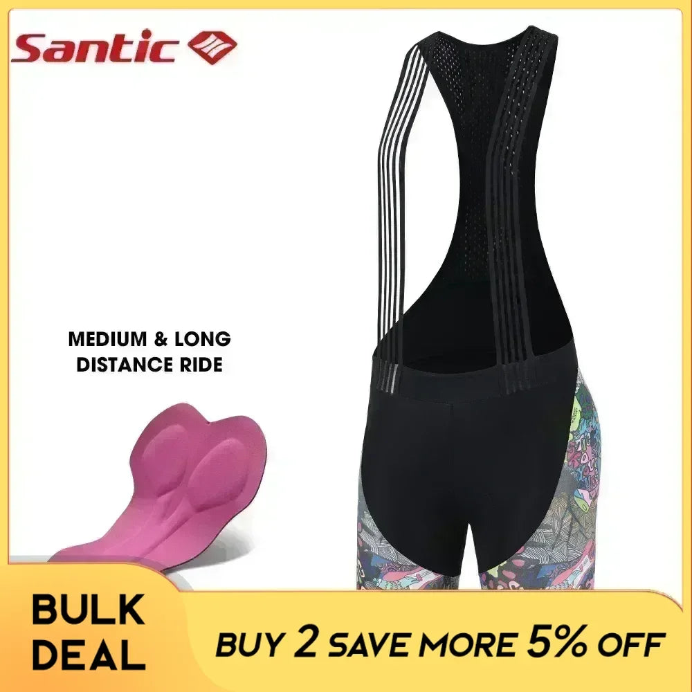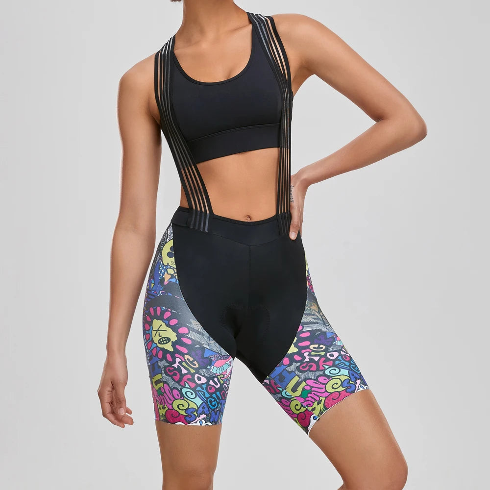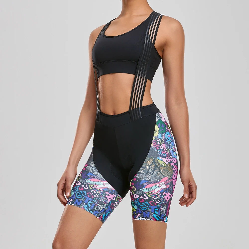 Women's Cycling Bib Shorts Outdoor Color Print Breathable Stretch Reflective