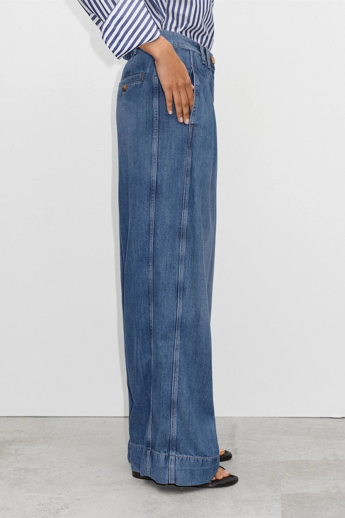 Women's Denim Pants High Waist Wide Leg Jeans Baggy Mom Casual Straight Leg Denim Pants Female Vintage Blue Baggy Trousers