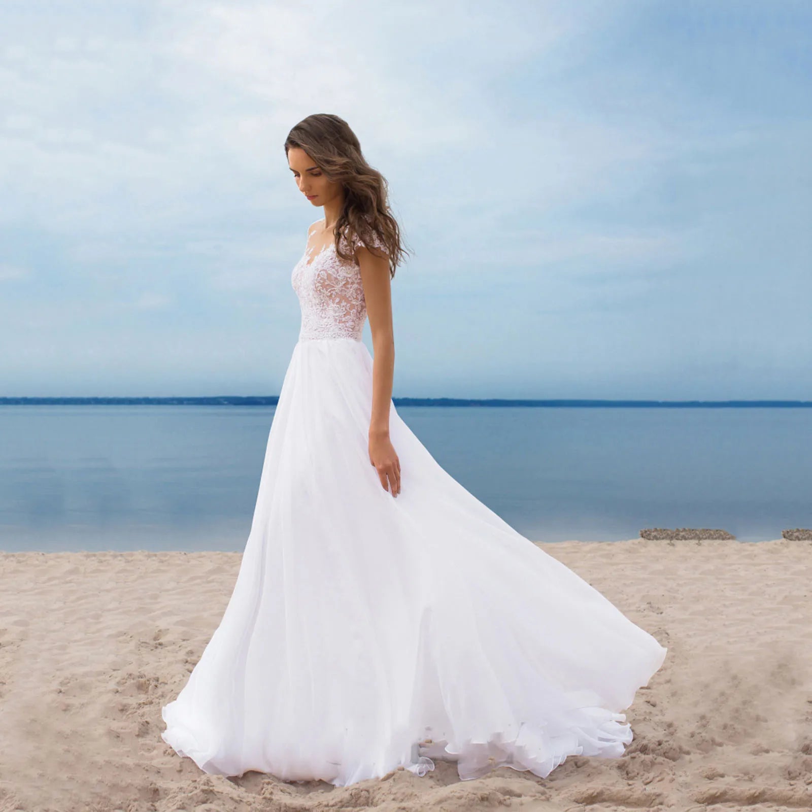 Women's Elegant Lace Backless Maxi Evening Dress Solid Color V Neck High Waist Wedding Party Sexy Bridesmaids White Dresses