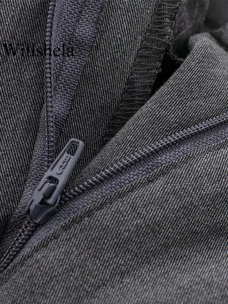 Women's Fashion Solid Front Zipper Straight Pants Vintage High Waist Full Length Female Chic Lady Trousers