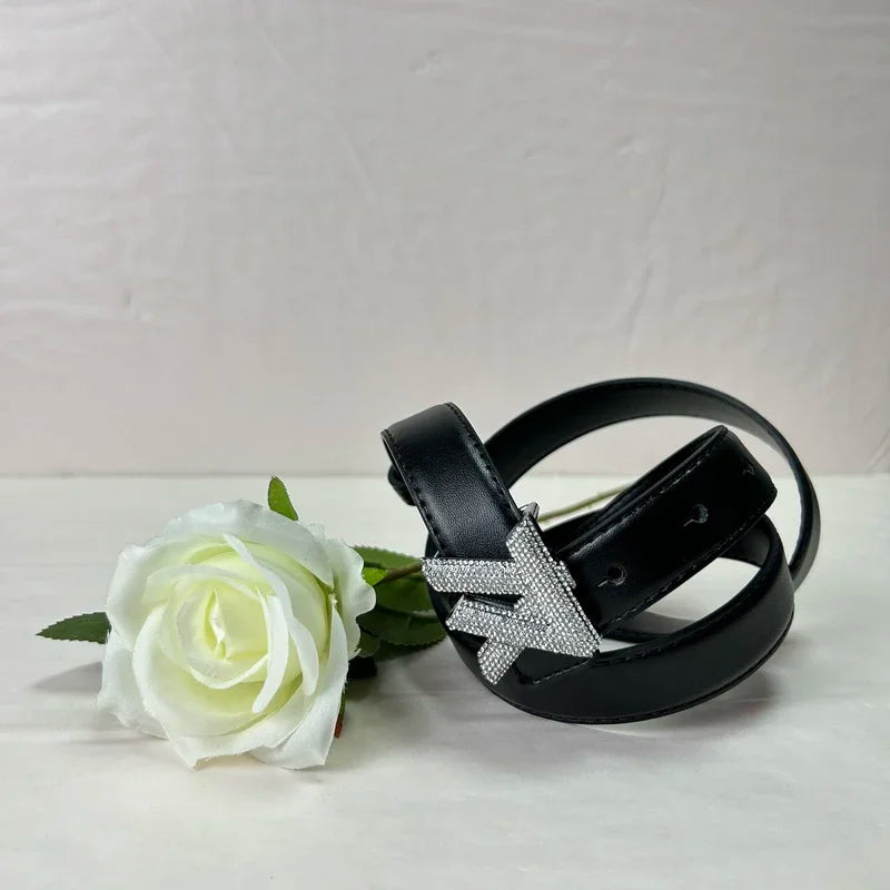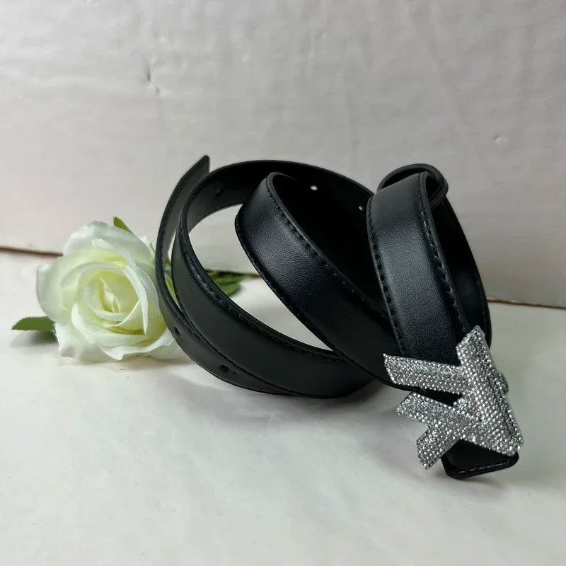 Elevate your wardrobe with this 2.3cm wide high-end fashion letter belt, designed for women. Crafted from a blend of PU, split leather, and metal, it features a versatile, adjustable design with geometric rhinestone accents for a touch of light luxury. Perfect for casual or dressy occasions, this belt effortlessly combines style and sophistication, adding a statement piece to any outfit.