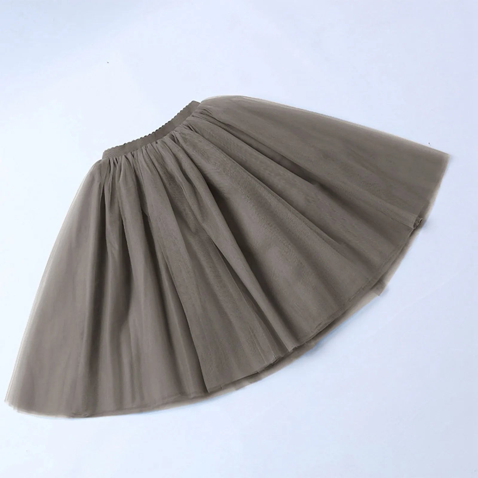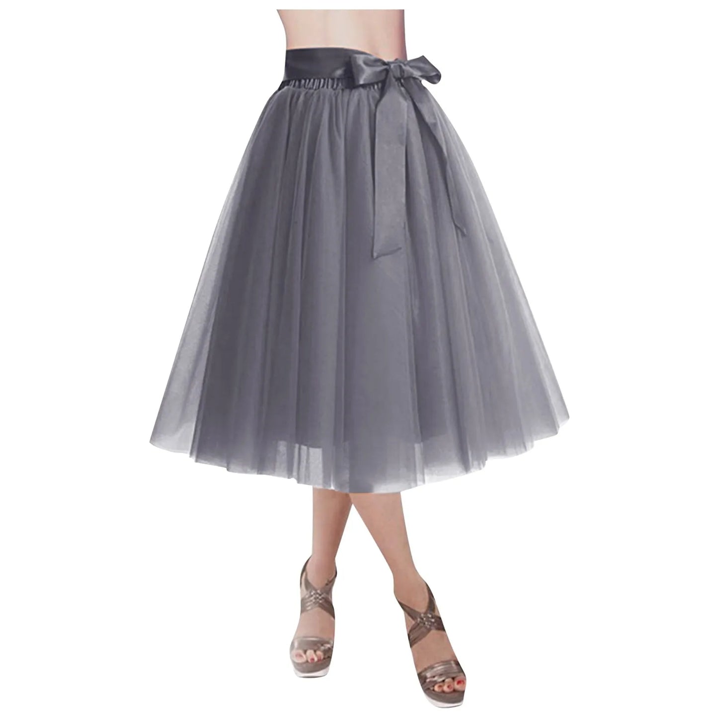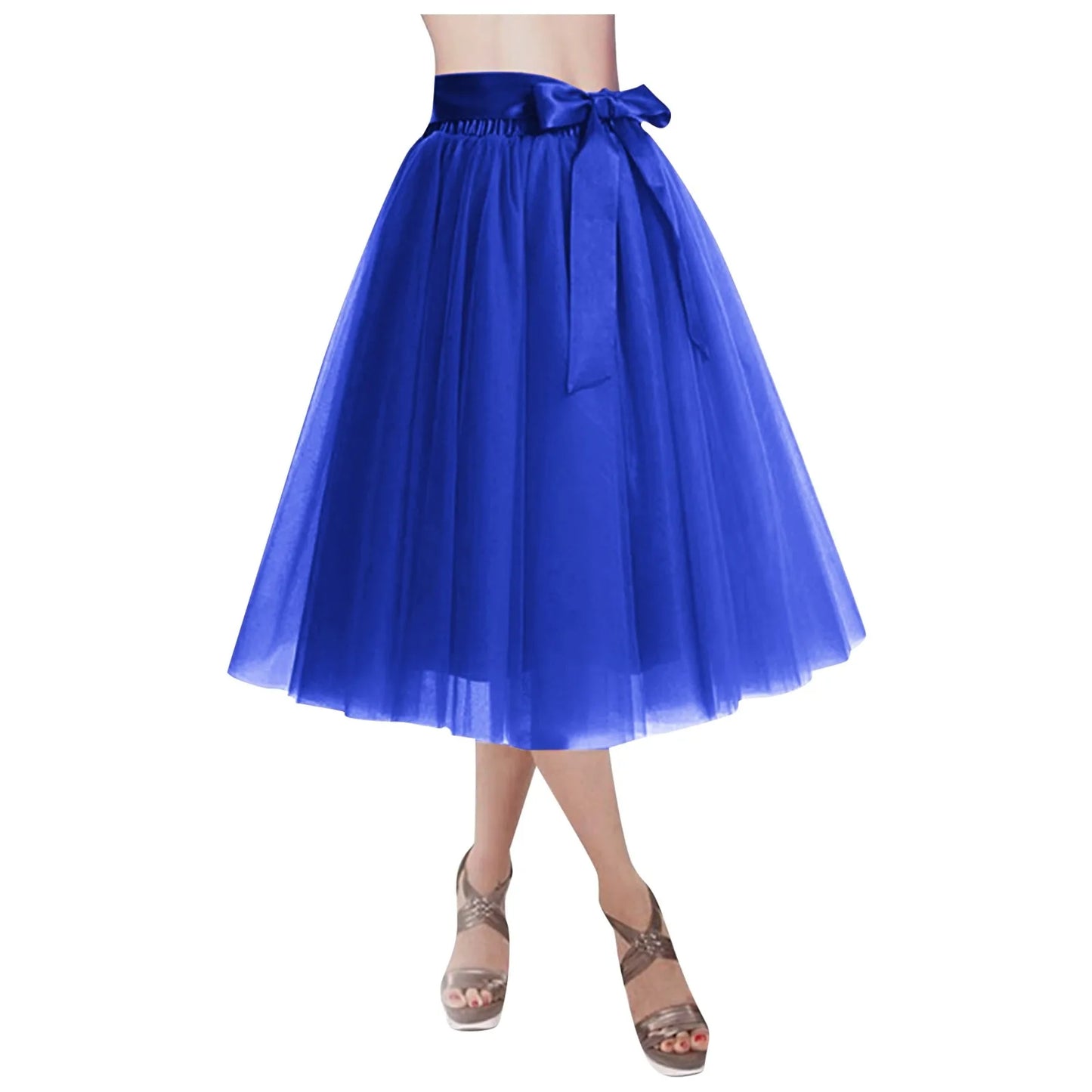 Women's Knee Length Mesh Skirt Solid Color Elegant Elastic High Waist A-Line Petticoat