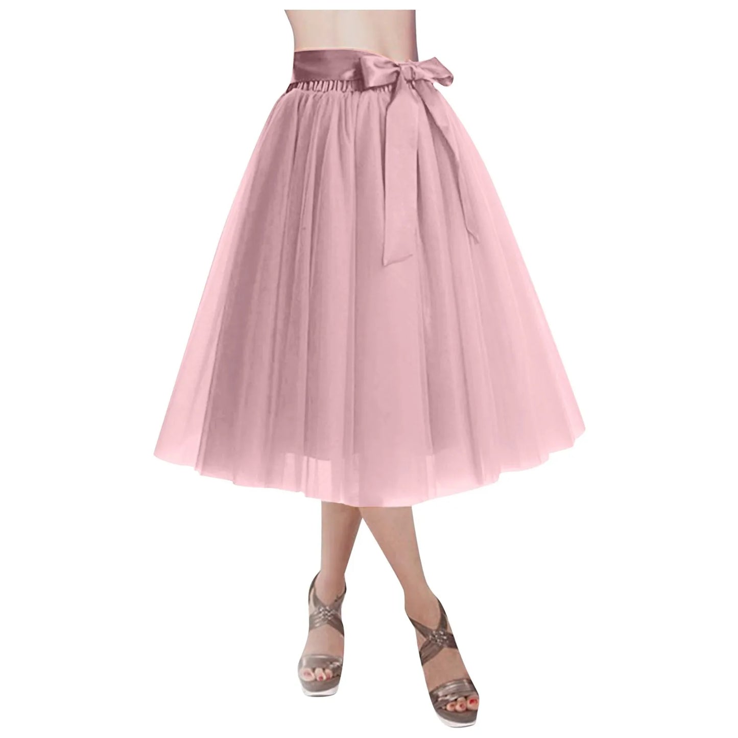 This women's knee-length skirt is a charming and feminine addition to any summer wardrobe. Crafted from lightweight polyester mesh with slight stretch, it offers both comfort and breathability. The A-line silhouette and empire waistline create a flattering, flowy fit, while the delicate bow decoration adds a touch of elegance. With its solid pattern and casual style, this skirt is perfect for warm-weather outings, effortlessly combining style and comfort.