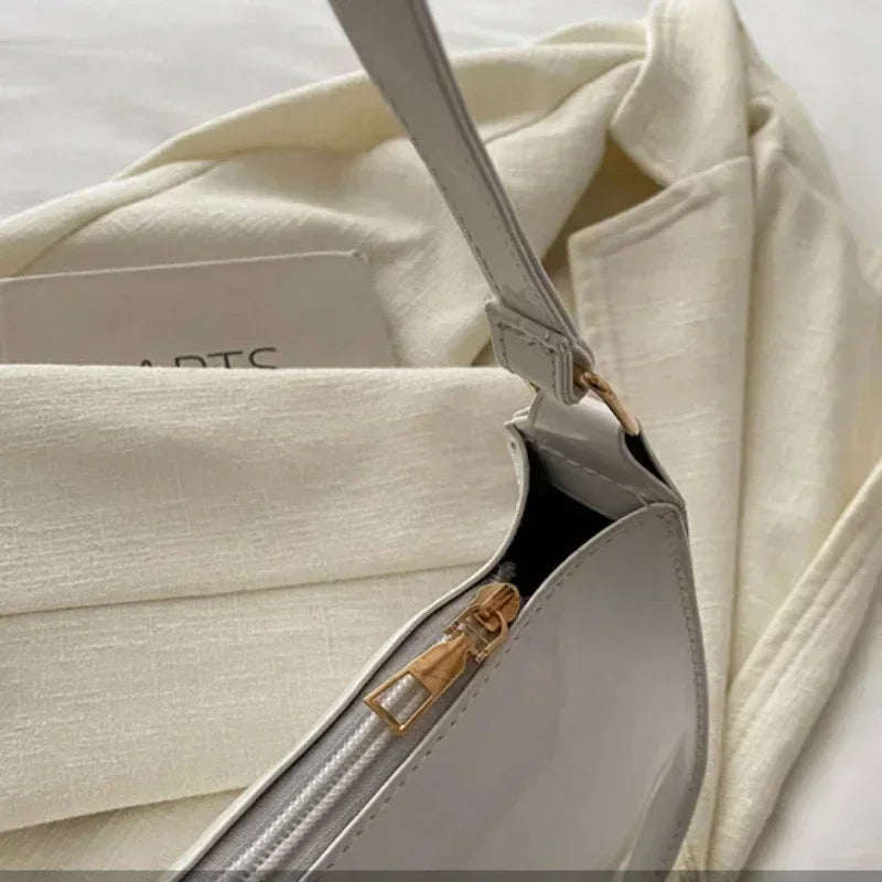 Women's Patent Leather Handbag Versatile Fashion Shoulder Casual Commuting Bags Girl Brand Designer Zipper Handbag Korean 2025
