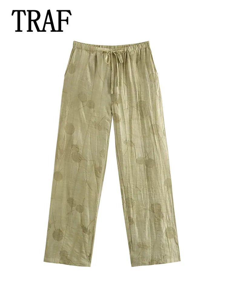 This casual two-piece suit combines effortless style with everyday comfort. Featuring a single-breasted top with a turn-down collar and eye-catching print decoration, the woven polyester fabric offers a slight stretch and a loose, relaxed fit. The matching ankle-length pants are designed with a flattering high waist, complementing the regular-length top for a balanced silhouette. Perfect for laid-back outings or stylish daytime looks, this printed set brings a touch of personality to your casual wardrobe.