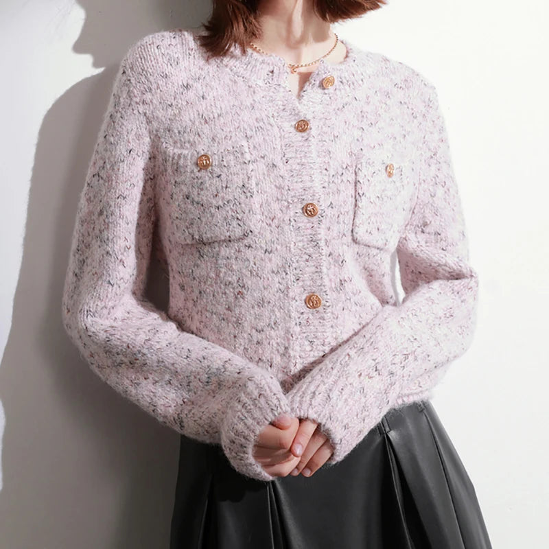Women's Single-breasted Cardigan Sweater Knit Long Sleeve O-Neck Elegant Office Sweater Coat Solid Warm Jacket Fall Winter