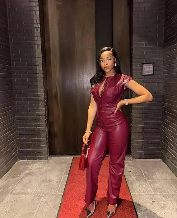 Step into sleek style with this Women's Slim Fit Jumpsuit, perfect for spring and summer streetwear. Made from lightweight polyester, this casual one-piece features a flattering straight-cut silhouette, short sleeves, and a sexy button-front design. Complete with practical pockets and a low waist fit, it's a comfortable yet stylish outfit choice for everyday wear or a night out.