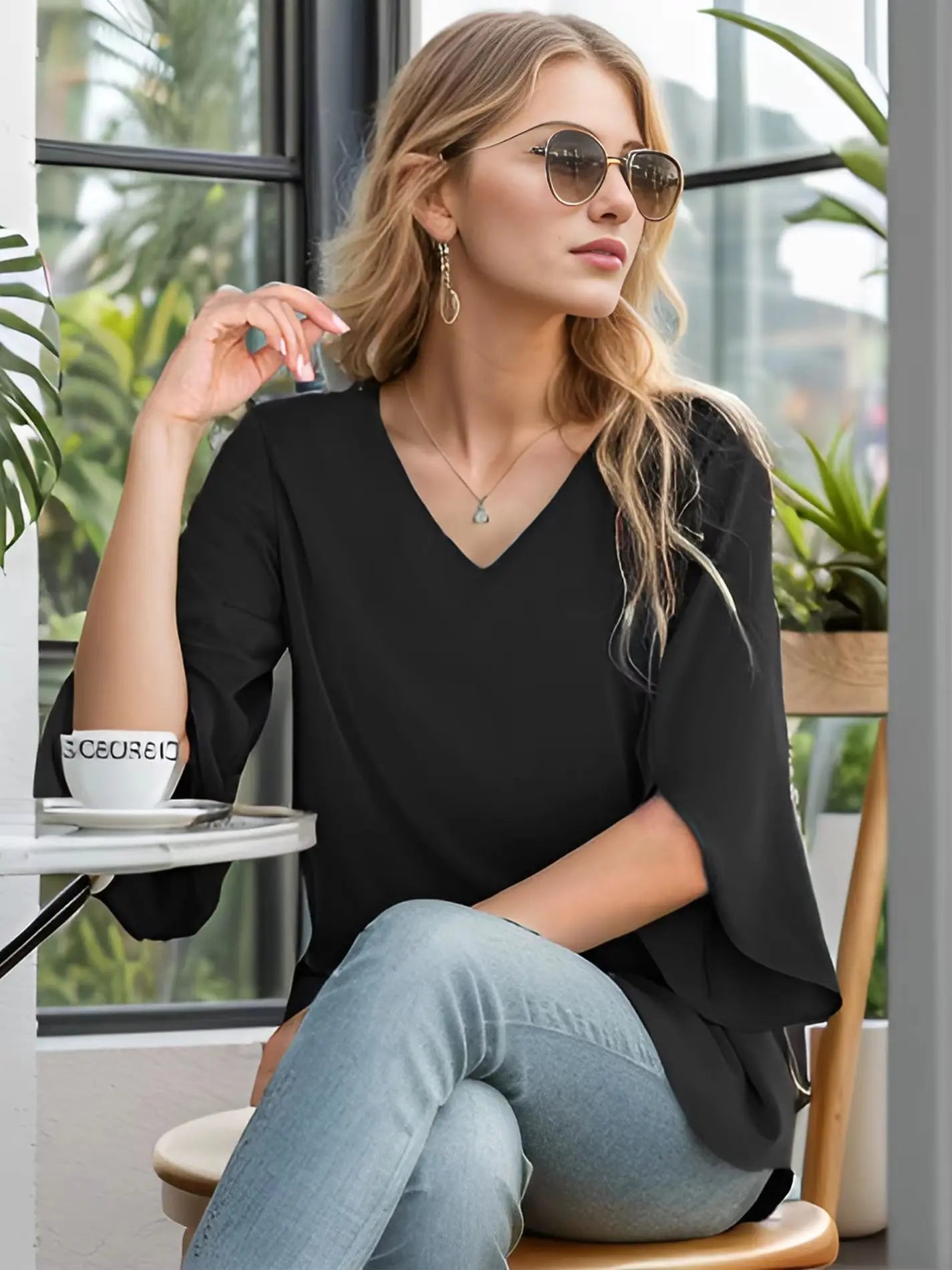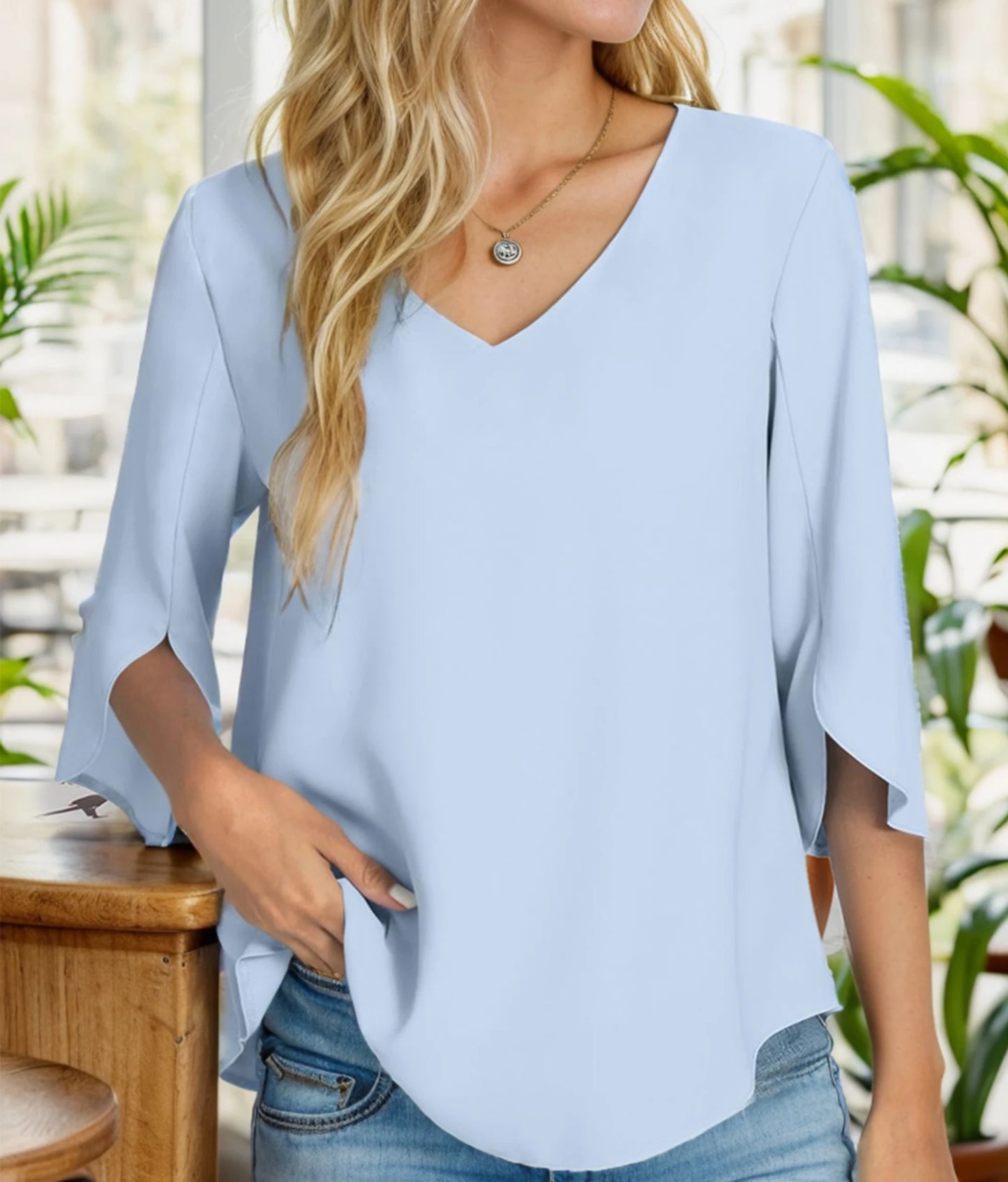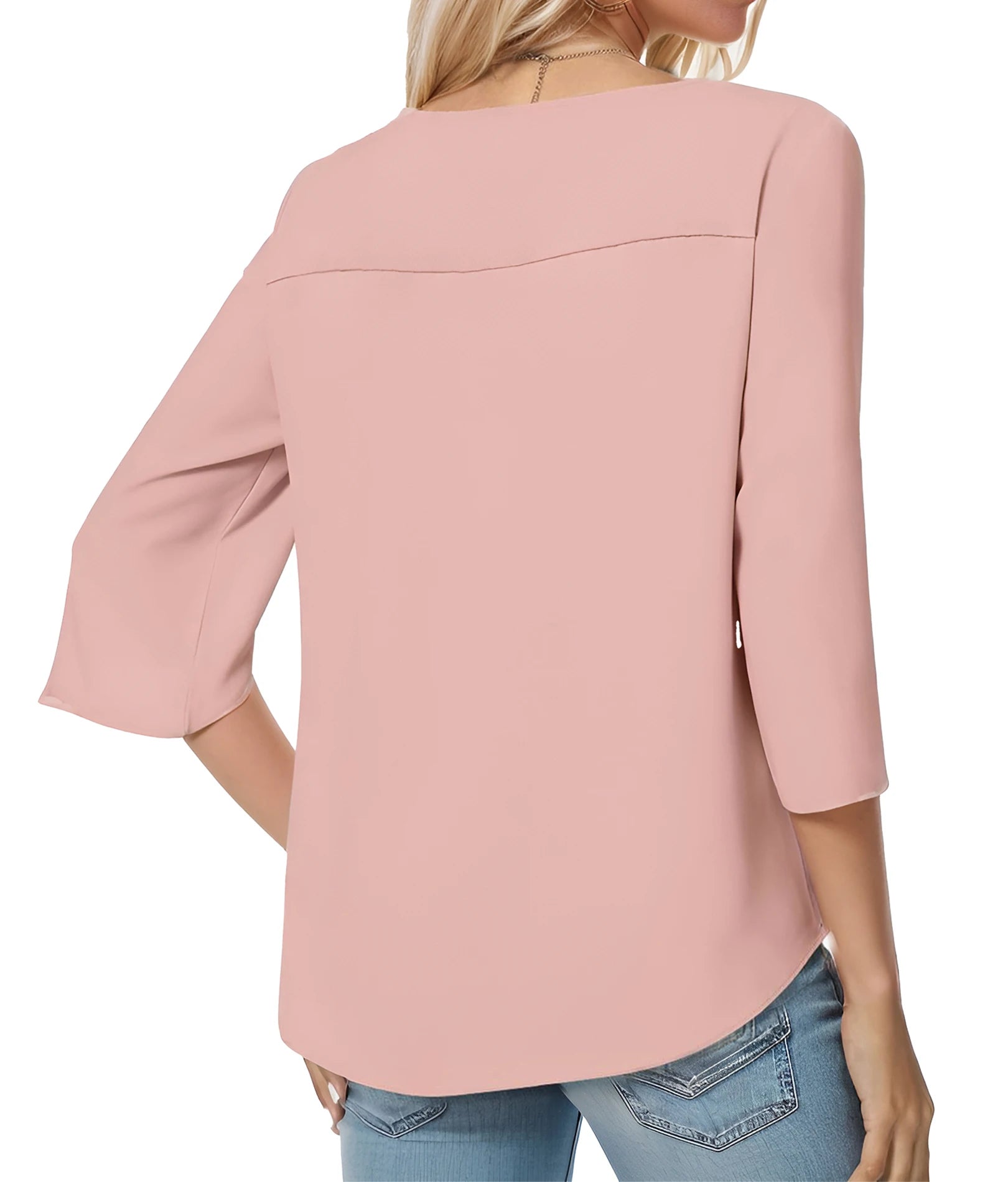 Women's Summer Tops Fashionable Casual Shirts Three Quarter Sleeve V Neck Work Shirts Business Casual Shirts