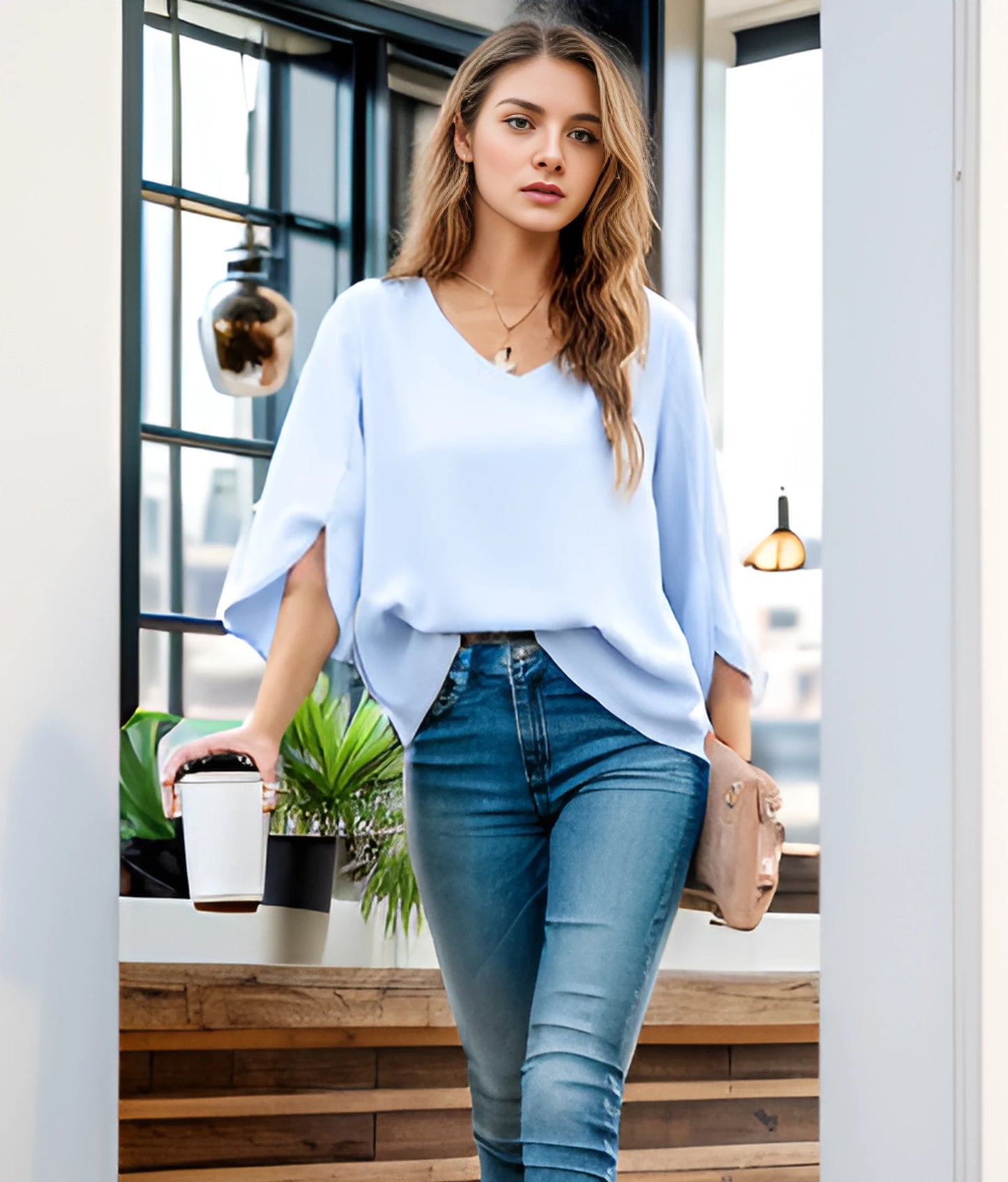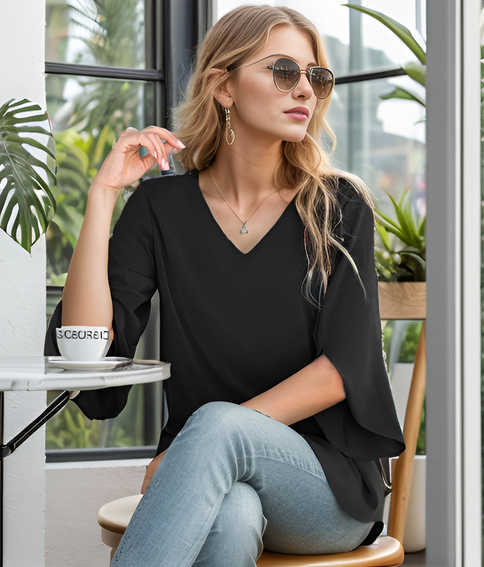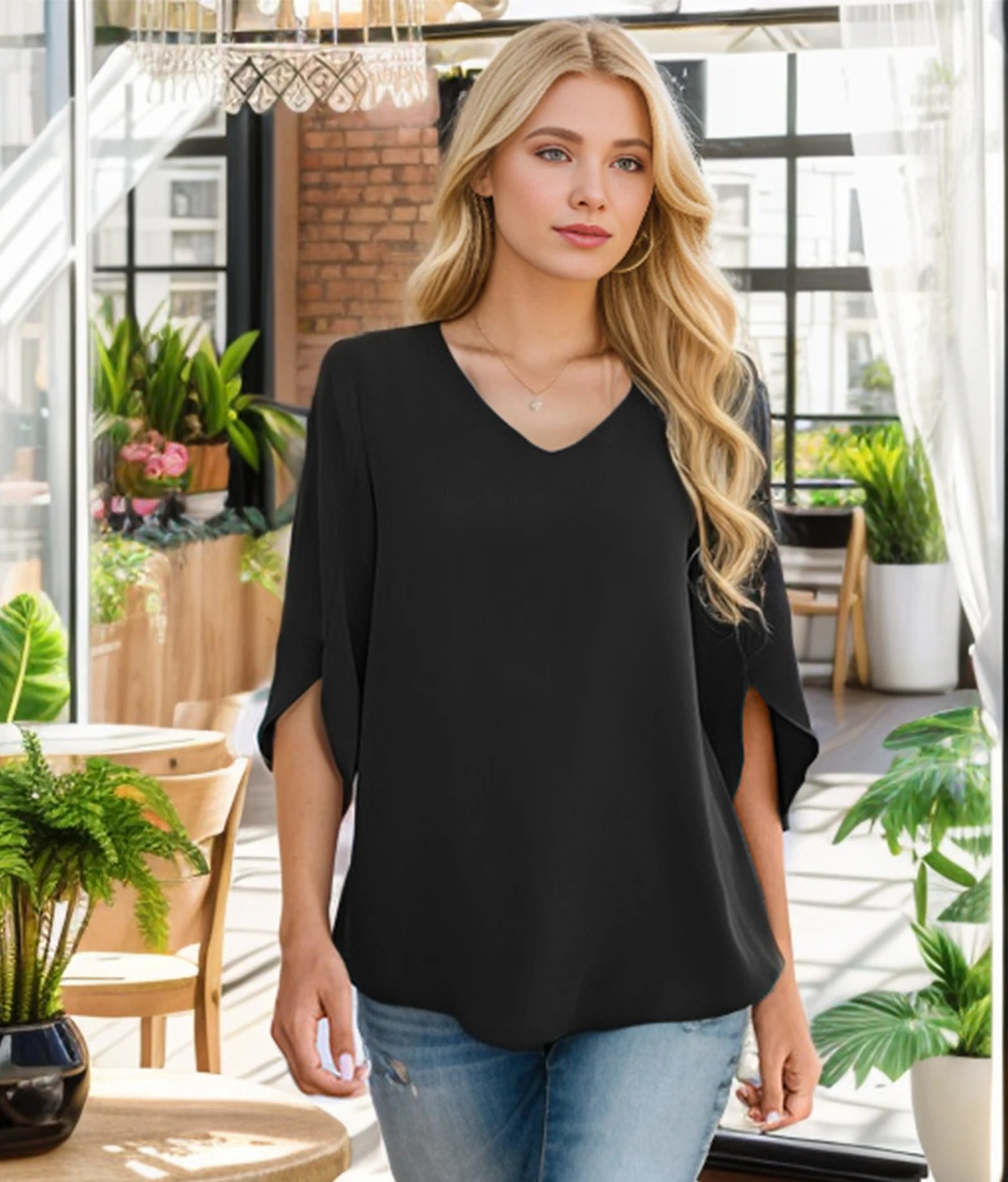 Women's Summer Tops Fashionable Casual Shirts Three Quarter Sleeve V Neck Work Shirts Business Casual Shirts