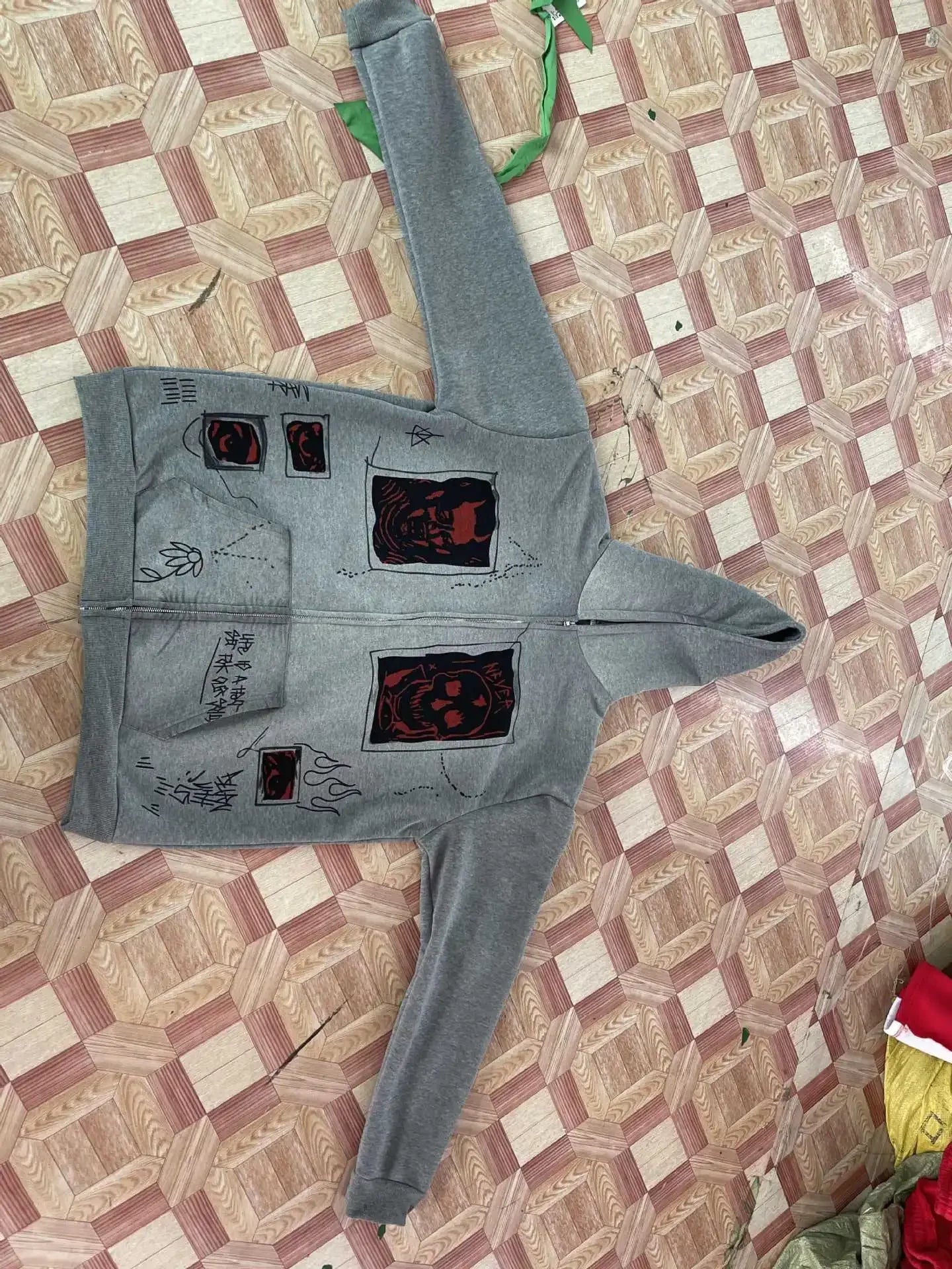 Women's sweatshirts Hoodie Sweatshirt Hip Hop Letter Vintage Skull Pattern Print Oversized Hoodie Jacket