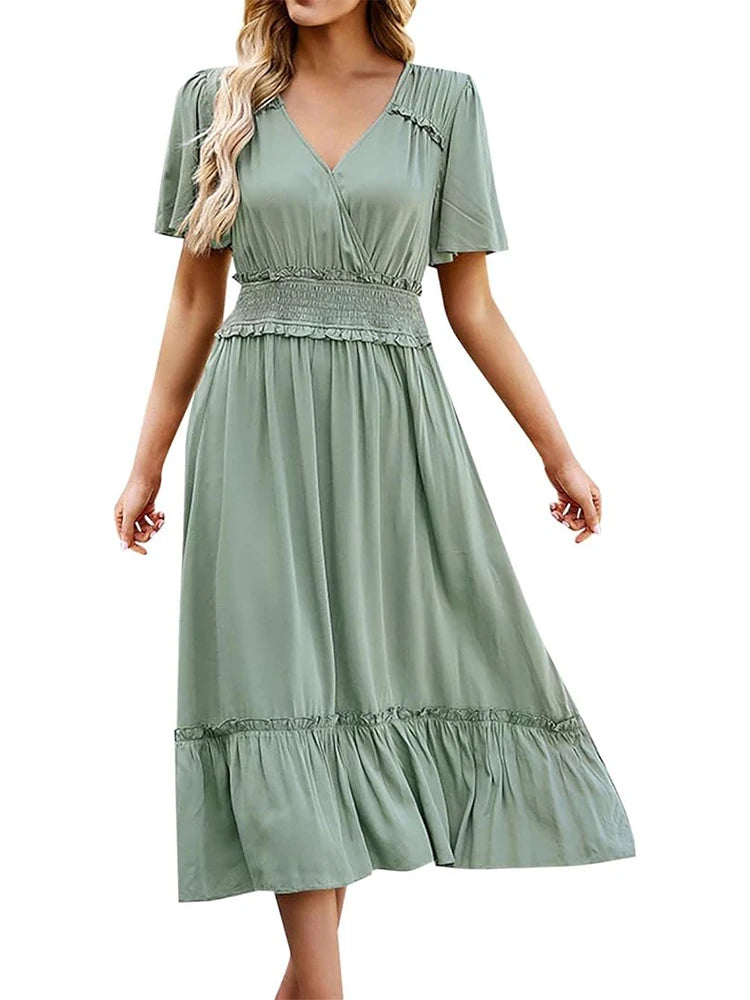 Women's V Neck Formal V Neck Maxi Dress Ruffle Fringe Short Sleeve Boho Long Dresses