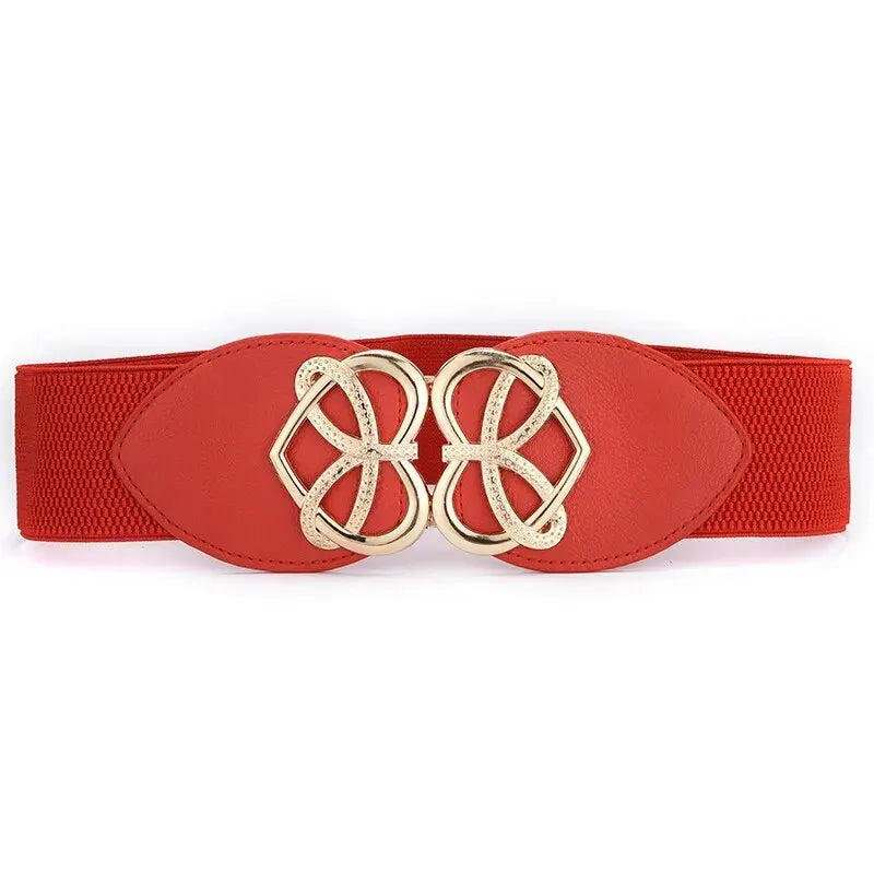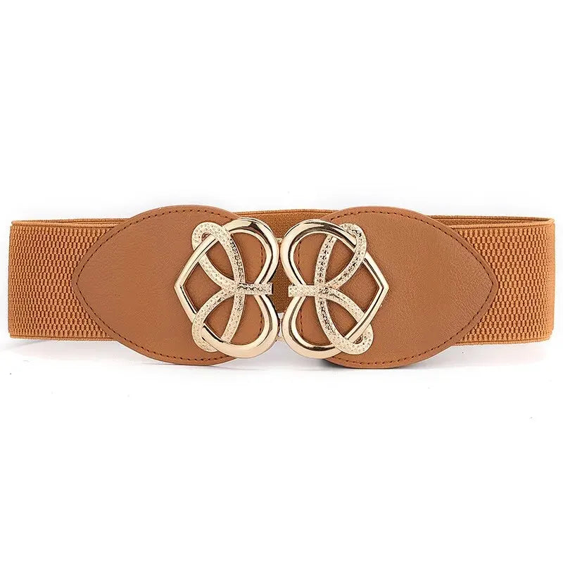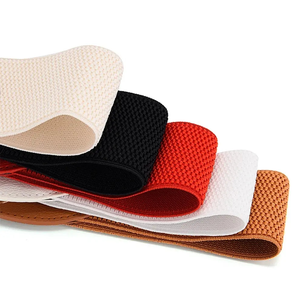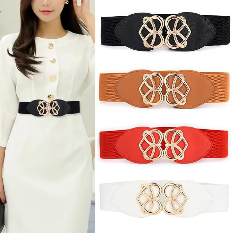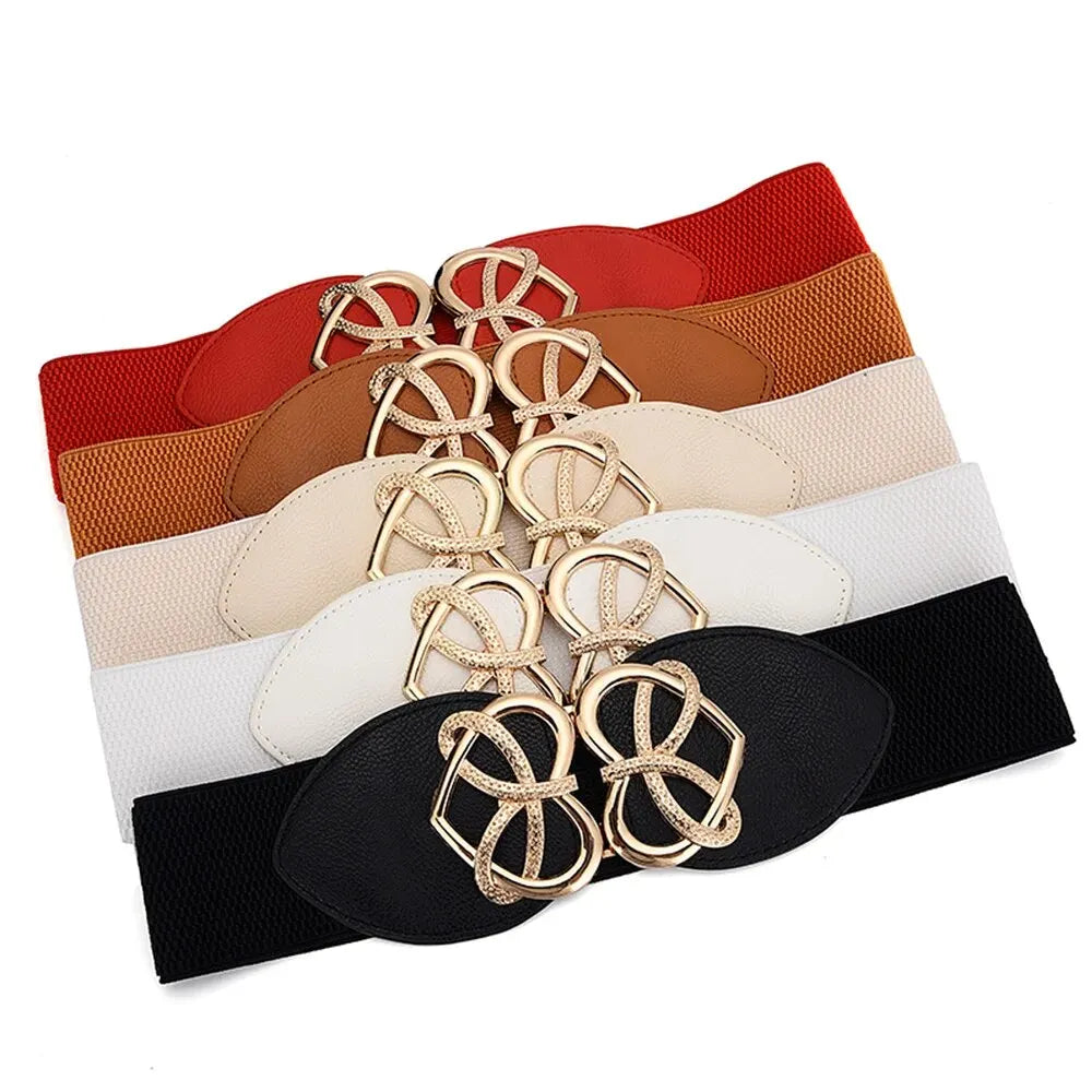 Women's Waist Cover Fashionable Golden Buckle Elastic Waist Closure With Double Hook Buckle Wide Belt