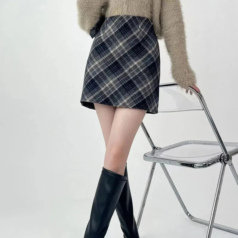This mini A-line skirt in a plaid pattern is a versatile piece that offers both style and comfort. Its slim fit, empire waist, and woolen fabric make it perfect for autumn and winter while offering plenty of opportunities for creative styling. From casual outings to more formal events, you can easily dress it up or down depending on the occasion.